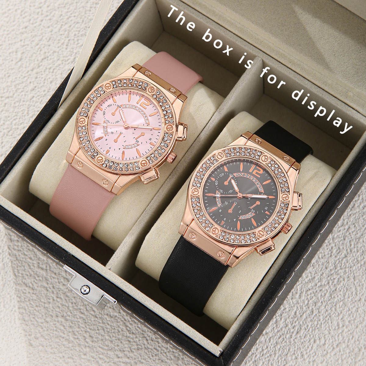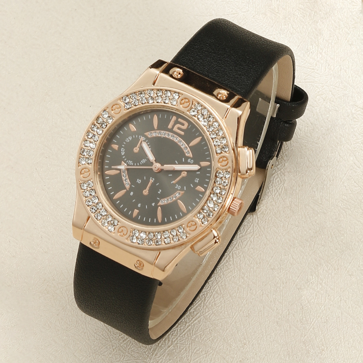 Bracelets de montre pour femmes, cuir PU, avec verre & alliage de zinc, Plaqué de couleur d'or rose, avec strass, plus de couleurs à choisir, 40mm Environ 9 pouce, Vendu par PC