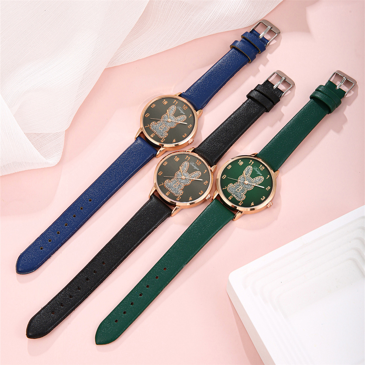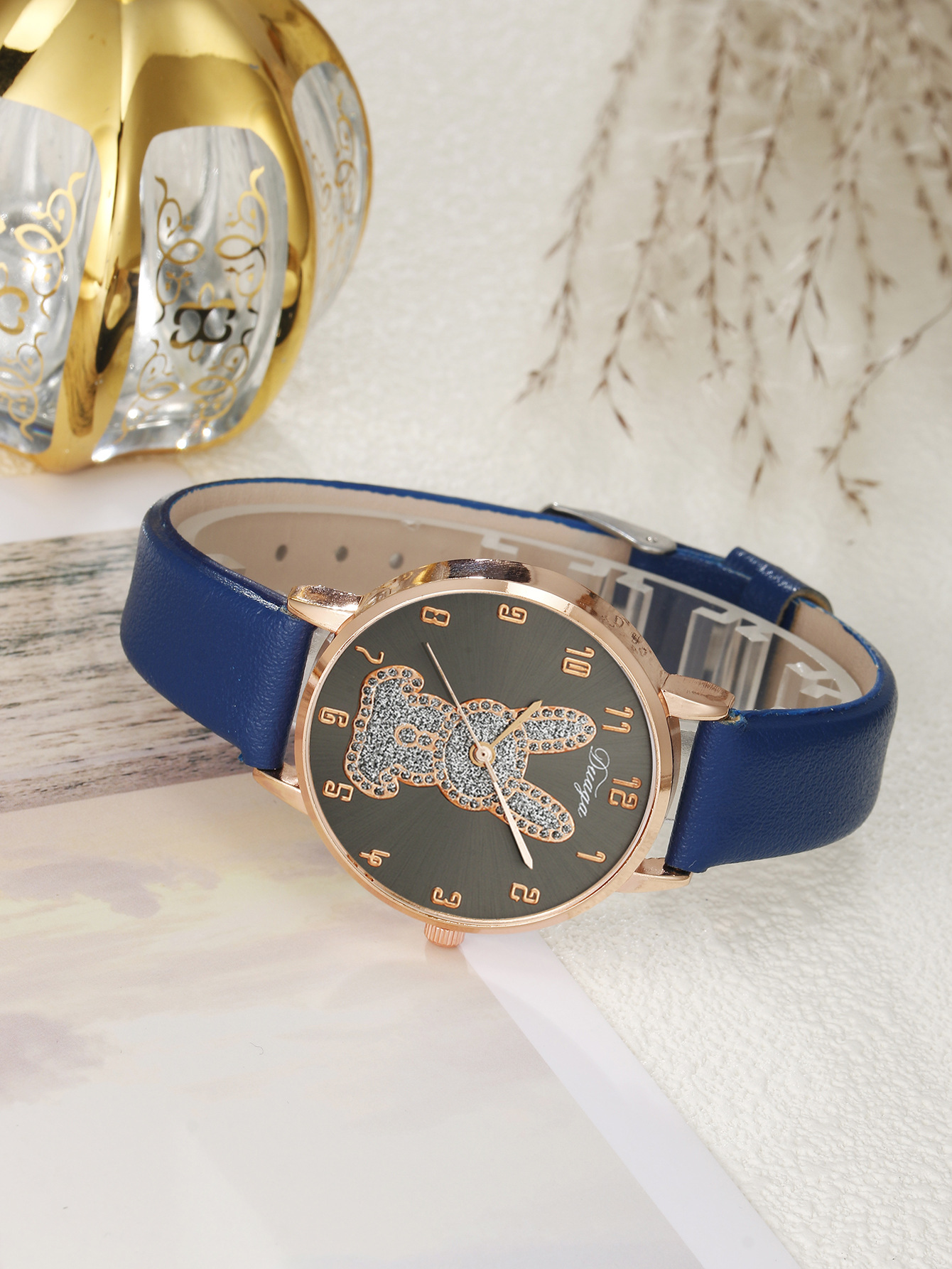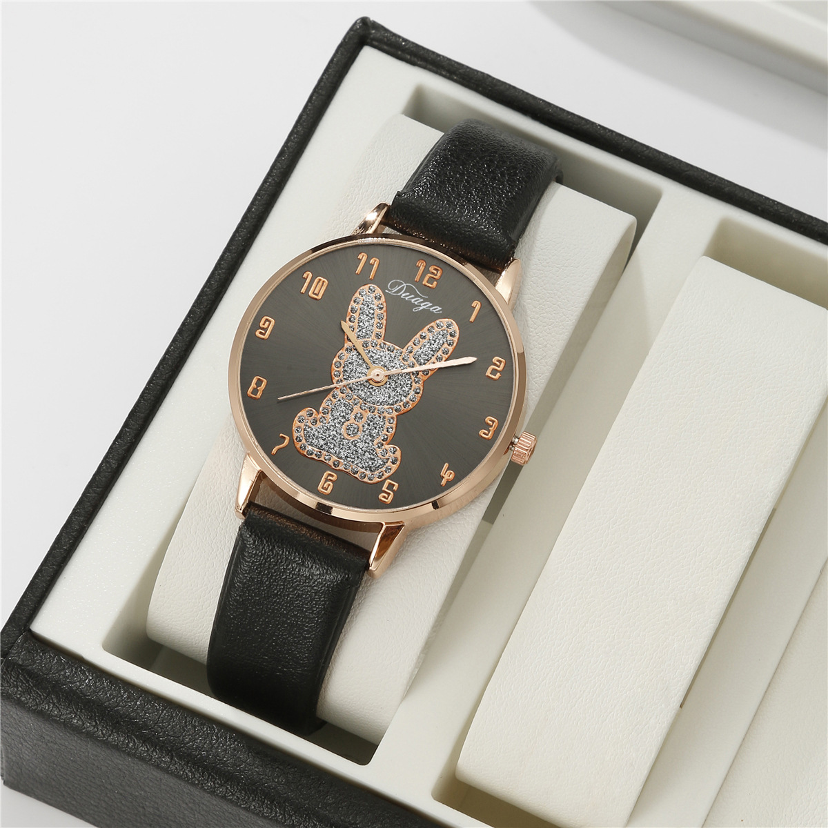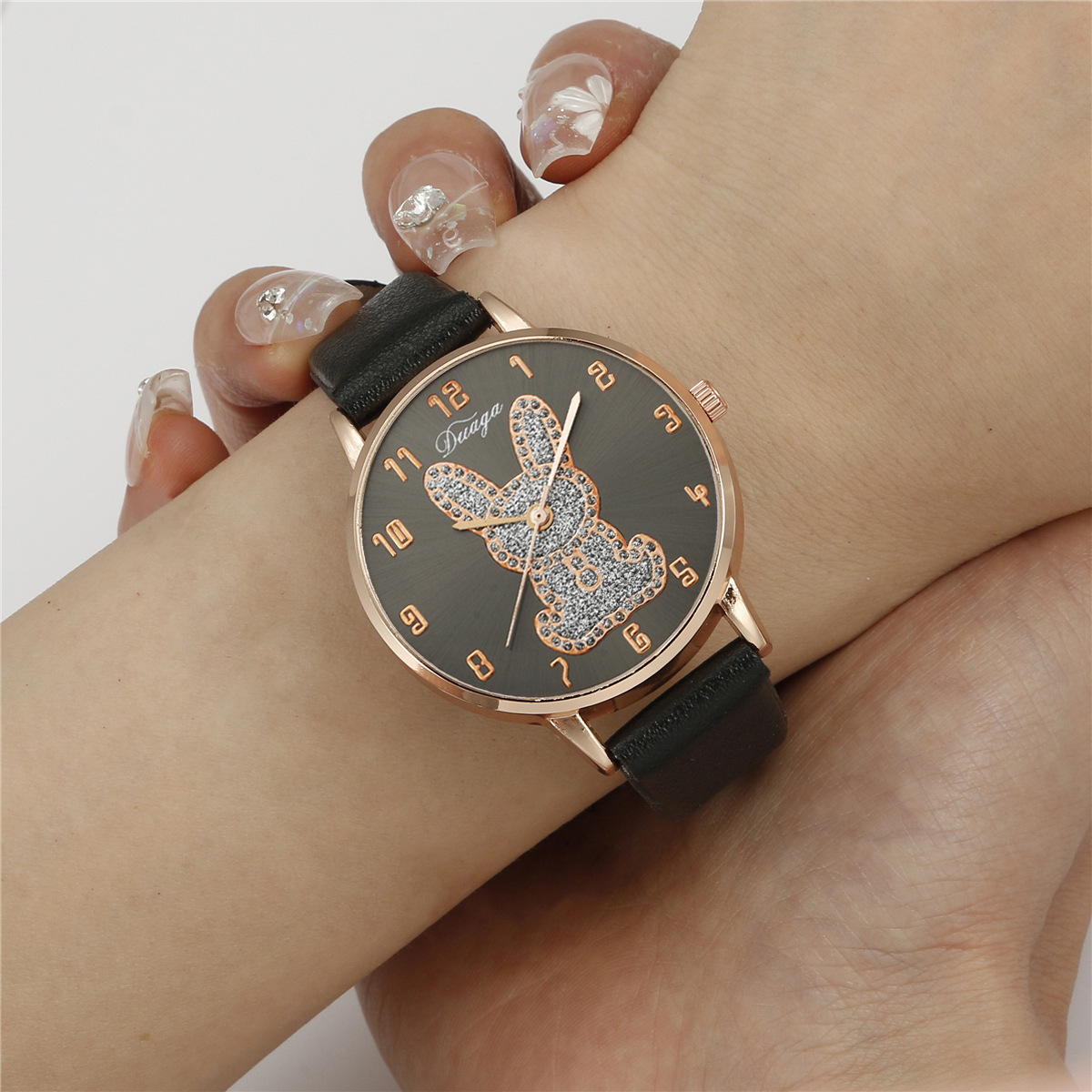 Bracelets de montre pour femmes, cuir PU, avec verre & alliage de zinc, Plaqué de couleur d'or rose, avec strass, plus de couleurs à choisir, 40mm Environ 9 pouce, Vendu par PC