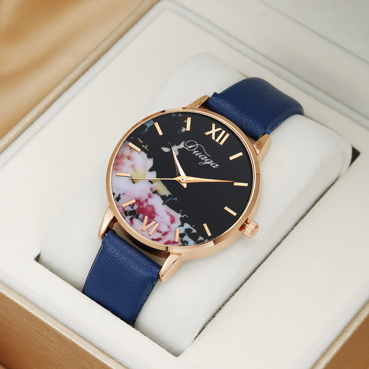 Bracelets de montre pour femmes, alliage de zinc, avec cuir PU & verre, mouvement chinoise, Plat rond, Placage de couleur d'or, avec motif de papillon, plus de couleurs à choisir, protéger l'environnement, sans nickel, plomb et cadmium, 40mm Environ 9 pouce, Vendu par PC