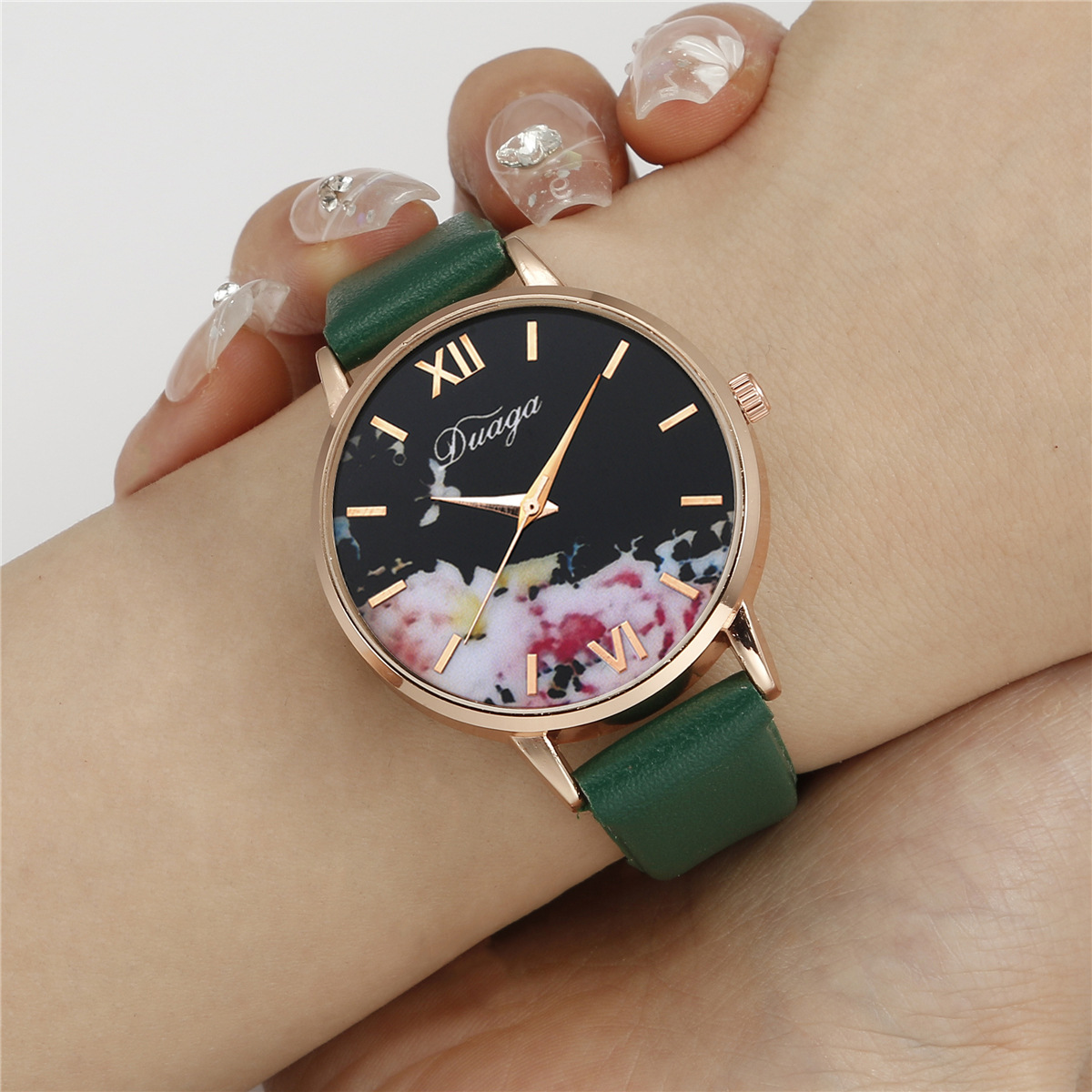 Bracelets de montre pour femmes, cuir PU, avec verre & alliage de zinc, Plaqué de couleur d'or rose, avec strass, plus de couleurs à choisir, 40mm Environ 9 pouce, Vendu par PC