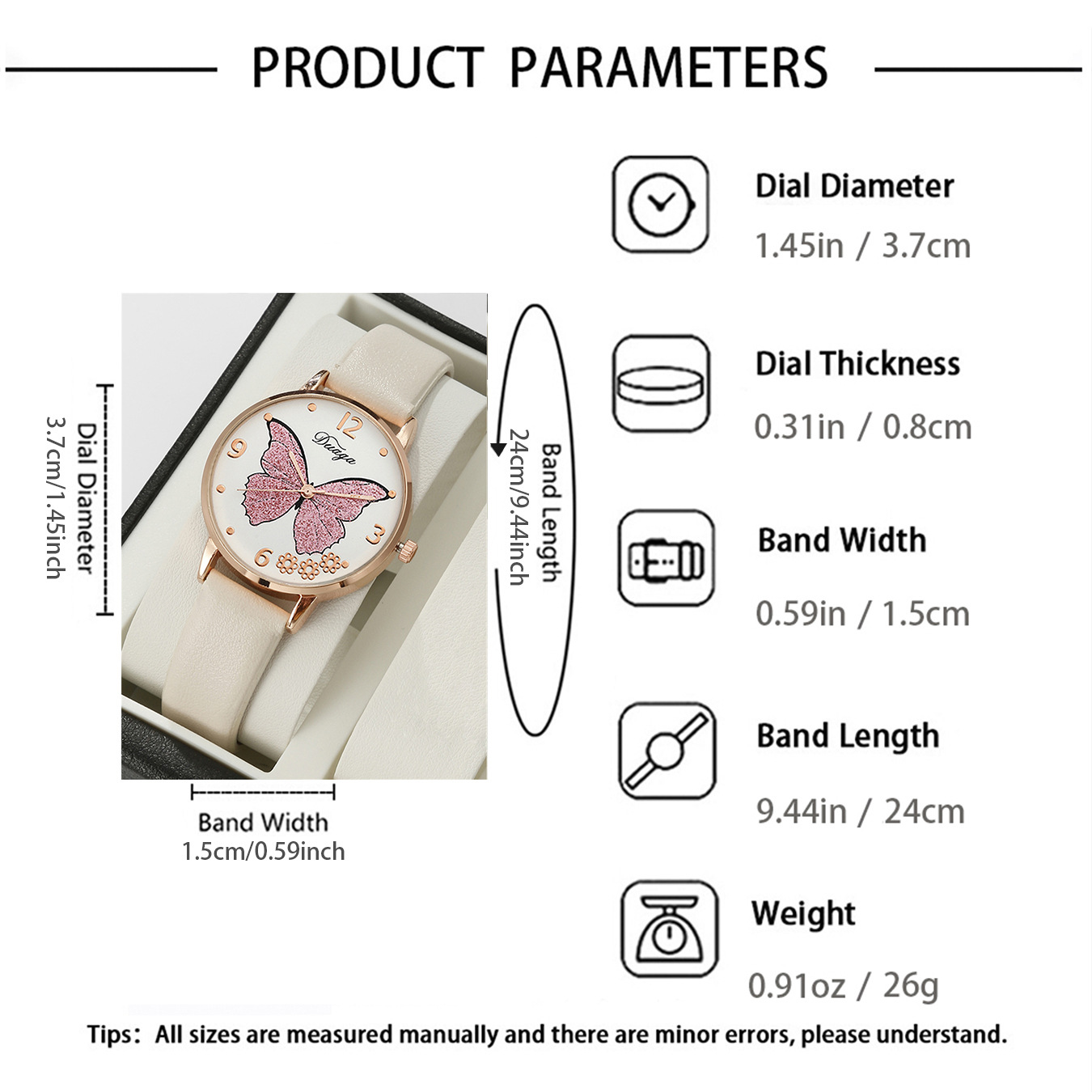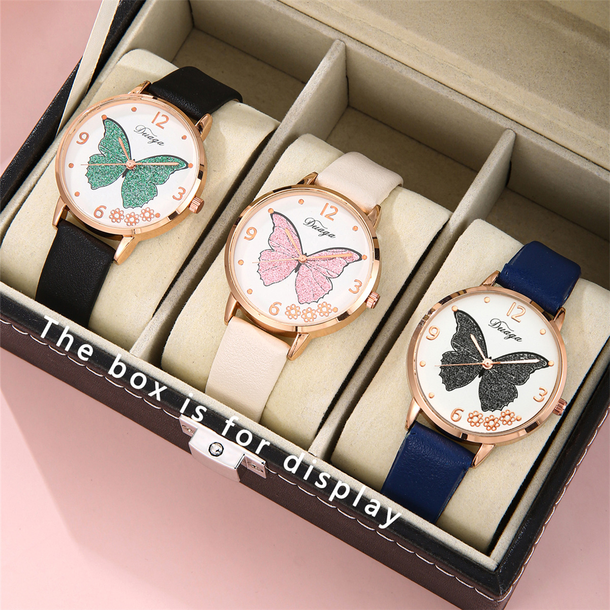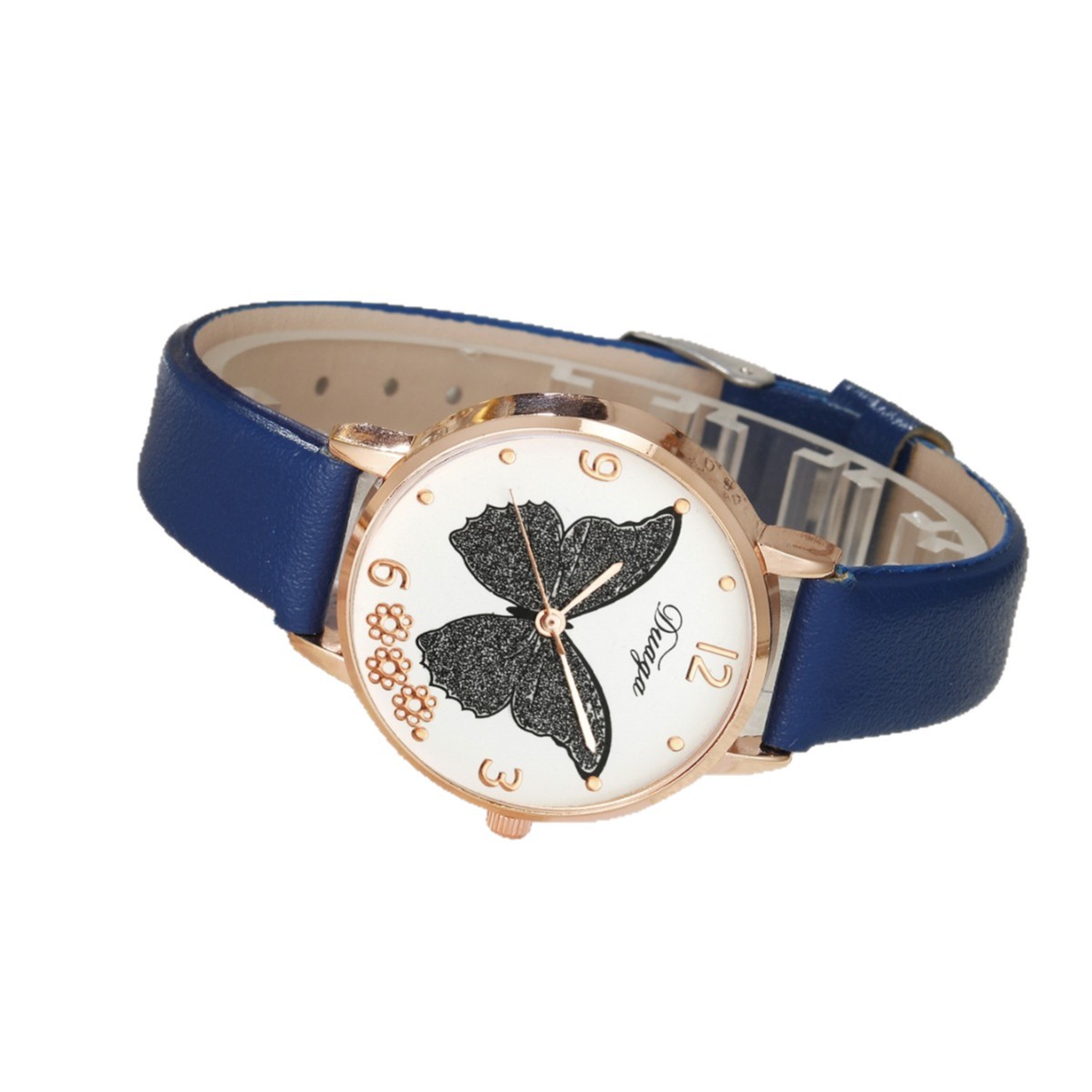 Bracelets de montre pour femmes, alliage de zinc, avec cuir PU & verre, mouvement chinoise, Plat rond, Placage de couleur d'or, avec motif de papillon, plus de couleurs à choisir, protéger l'environnement, sans nickel, plomb et cadmium, 40mm Environ 9 pouce, Vendu par PC