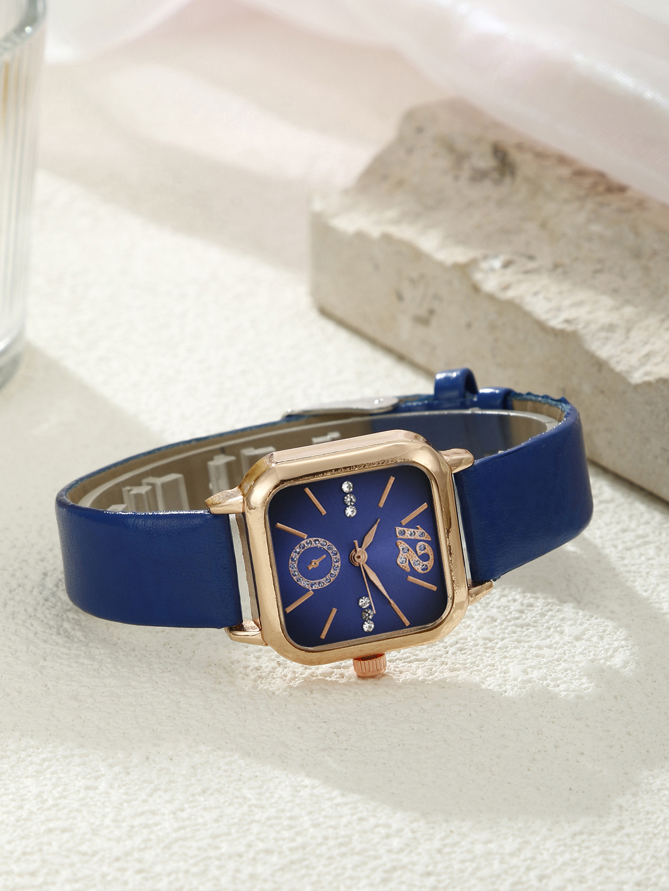 Bracelets de montre pour femmes, cuir PU, avec verre & alliage de zinc, Plaqué de couleur d'or rose, avec strass, plus de couleurs à choisir, 40mm Environ 9 pouce, Vendu par PC