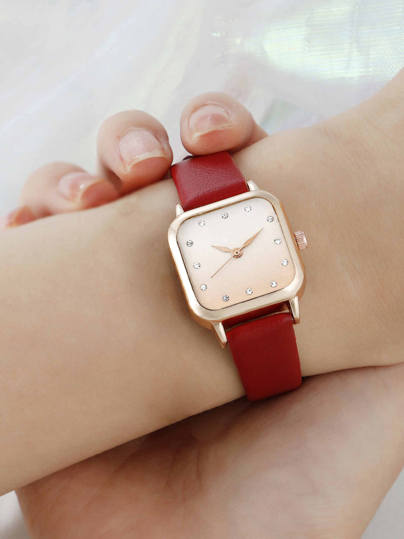 Bracelets de montre pour femmes, cuir PU, avec verre & alliage de zinc, Plaqué de couleur d'or rose, avec strass, plus de couleurs à choisir, 40mm Environ 9 pouce, Vendu par PC