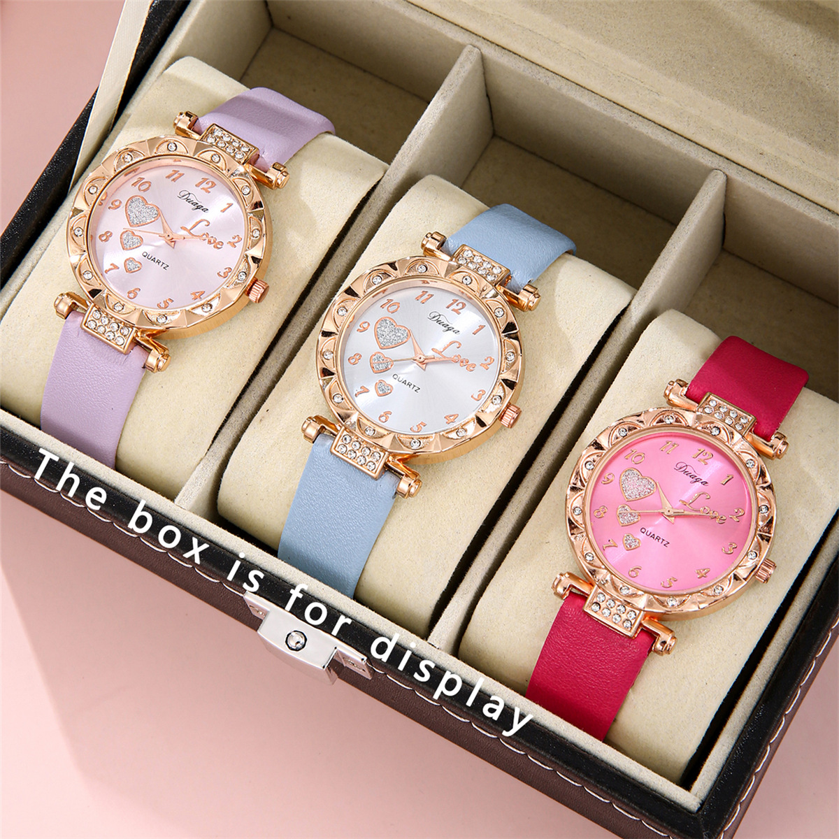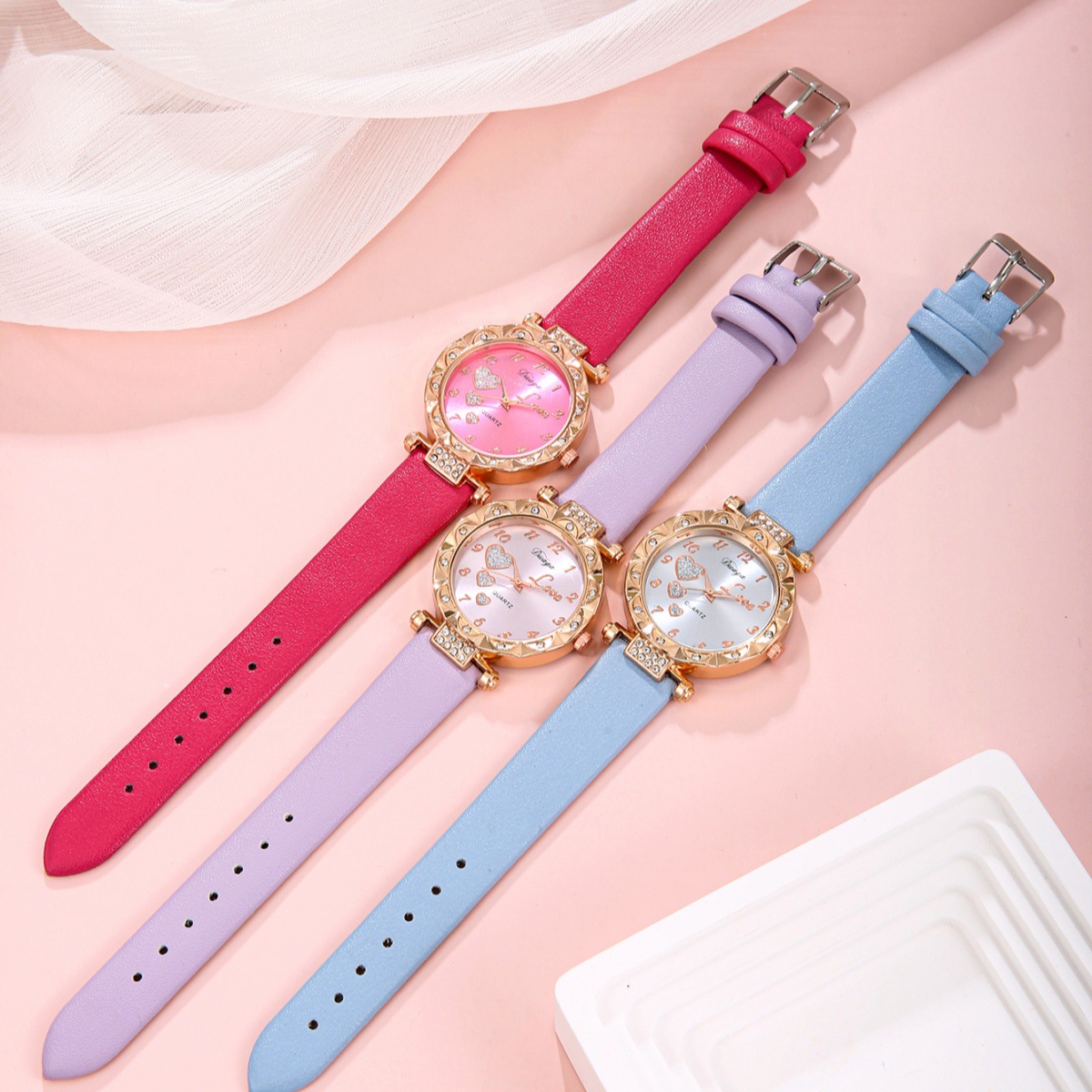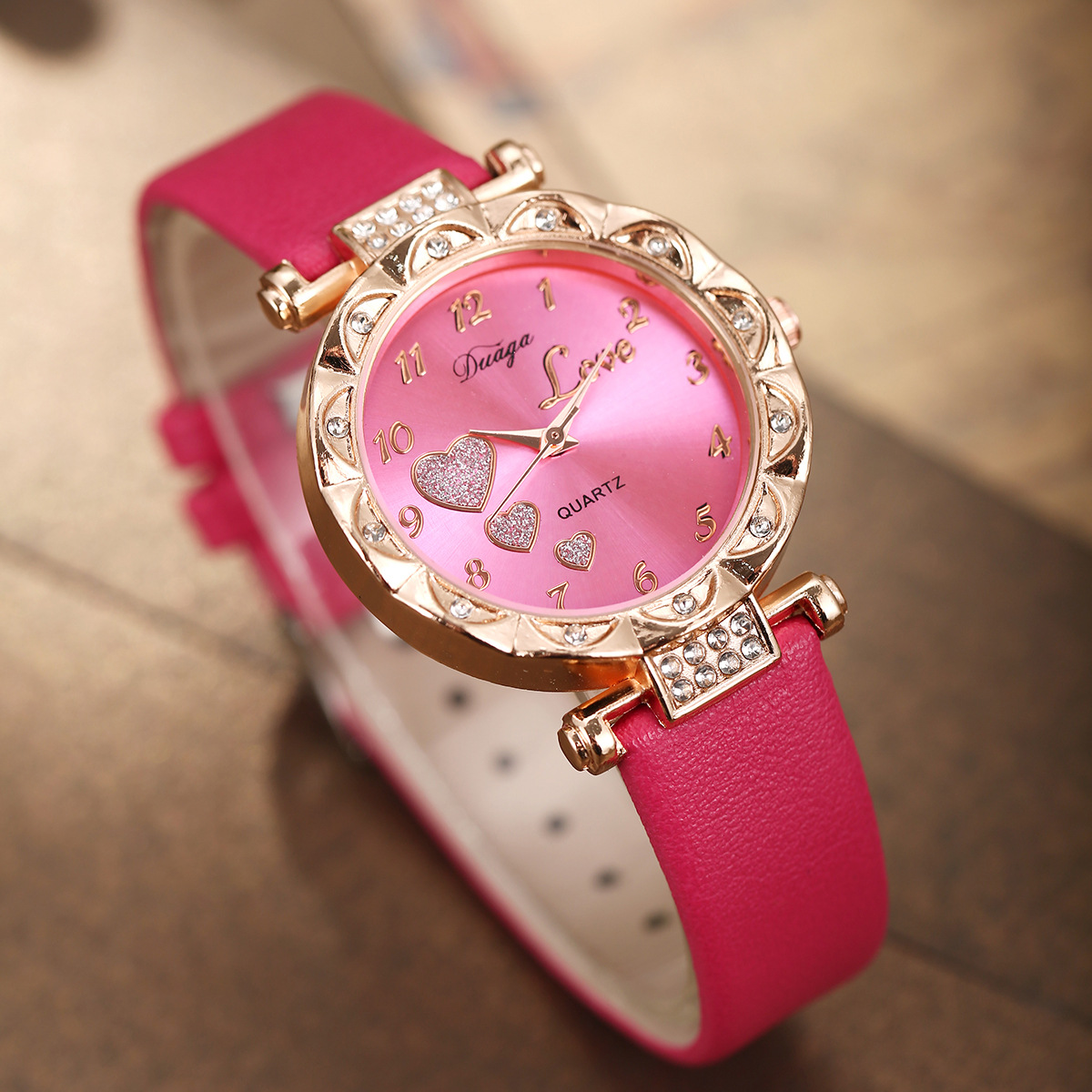 Bracelets de montre pour femmes, cuir PU, avec verre & alliage de zinc, Plaqué de couleur d'or rose, avec strass, plus de couleurs à choisir, 40mm Environ 9 pouce, Vendu par PC