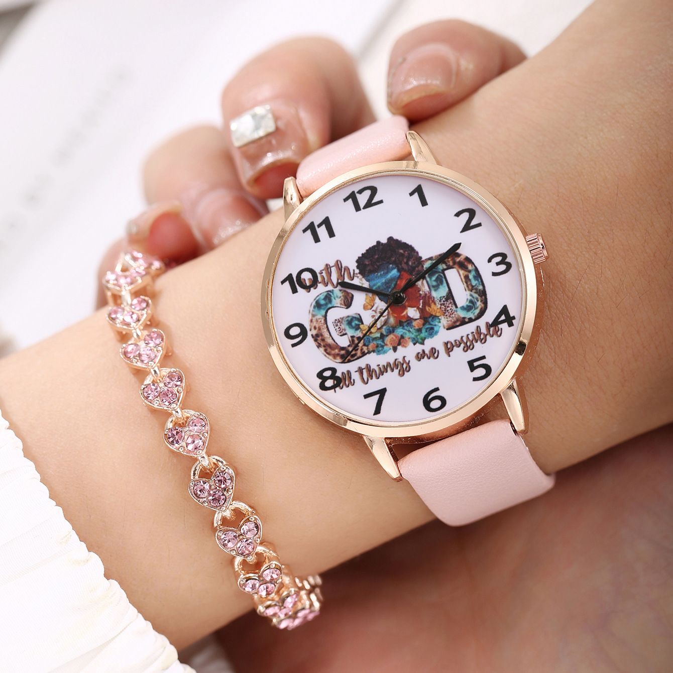 Bracelets de montre pour femmes, cuir PU, avec cadran en alliage de zinc & verre, Plat rond, peinture, réglable Environ 9.5 pouce, Vendu par brin