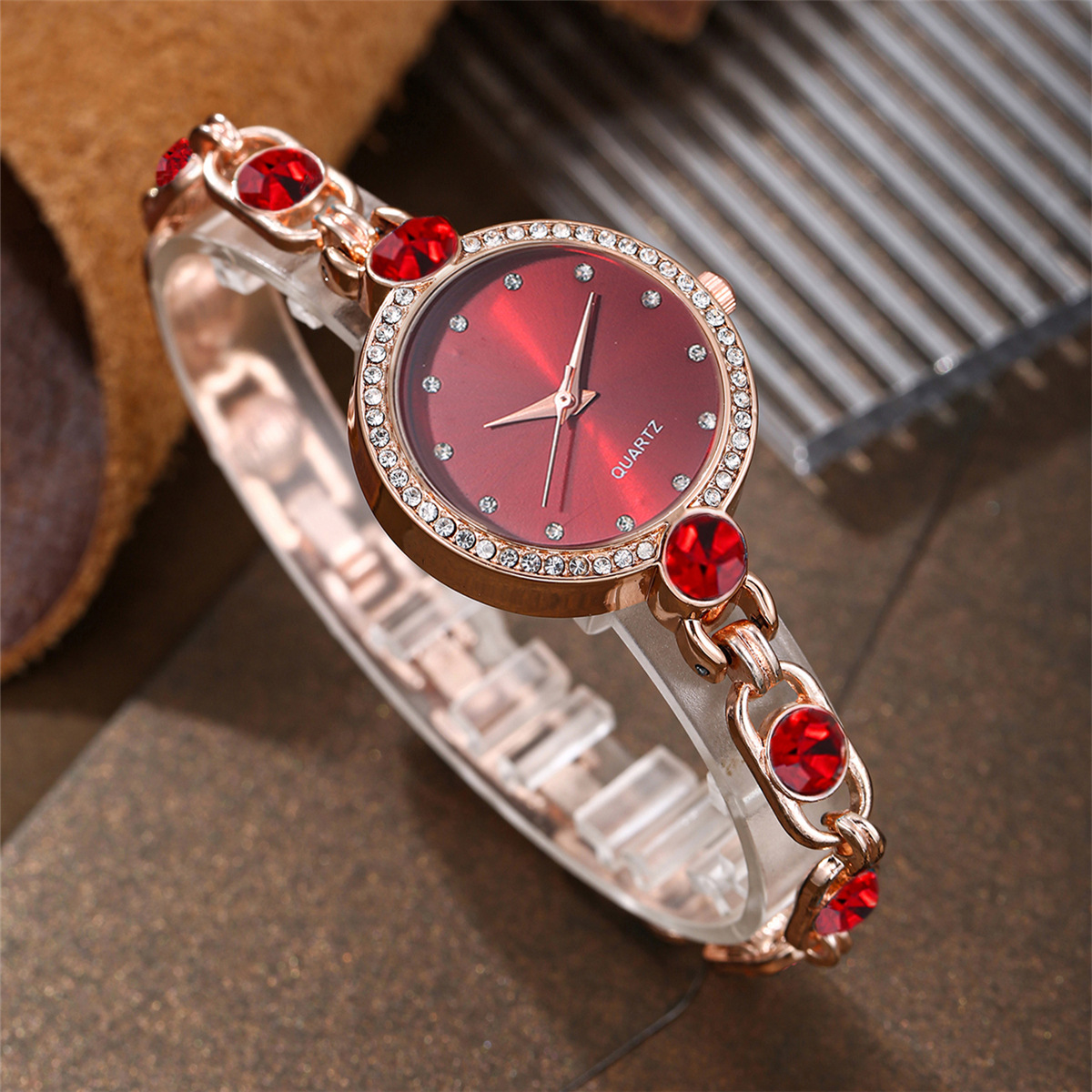 Bracelets de montre pour femmes, verre, avec alliage de zinc, mouvement chinoise, Placage, sans boîte & conception étoilée, plus de couleurs à choisir, 30mm Environ 8.6 pouce, Vendu par PC