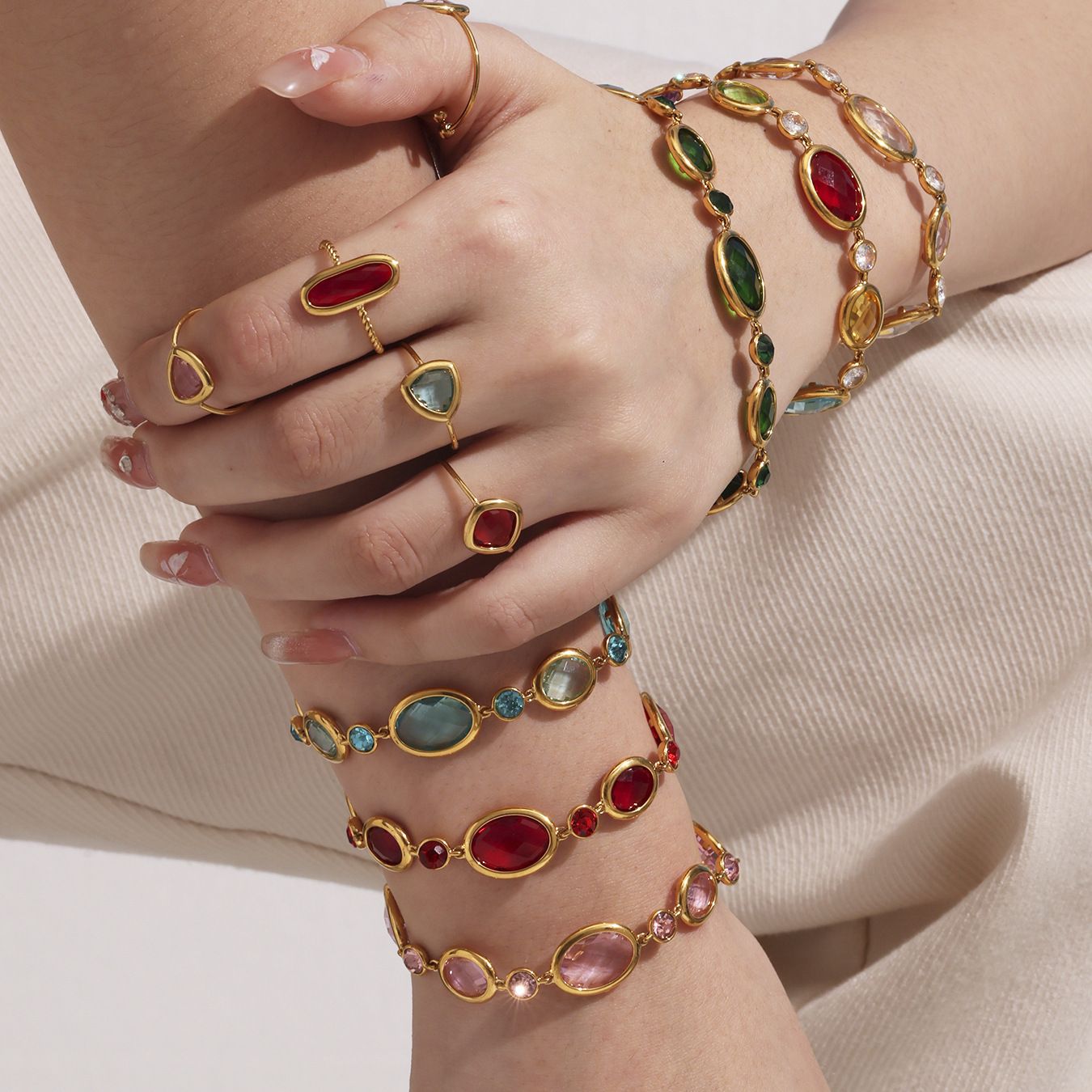 gold red glass stone bracelet