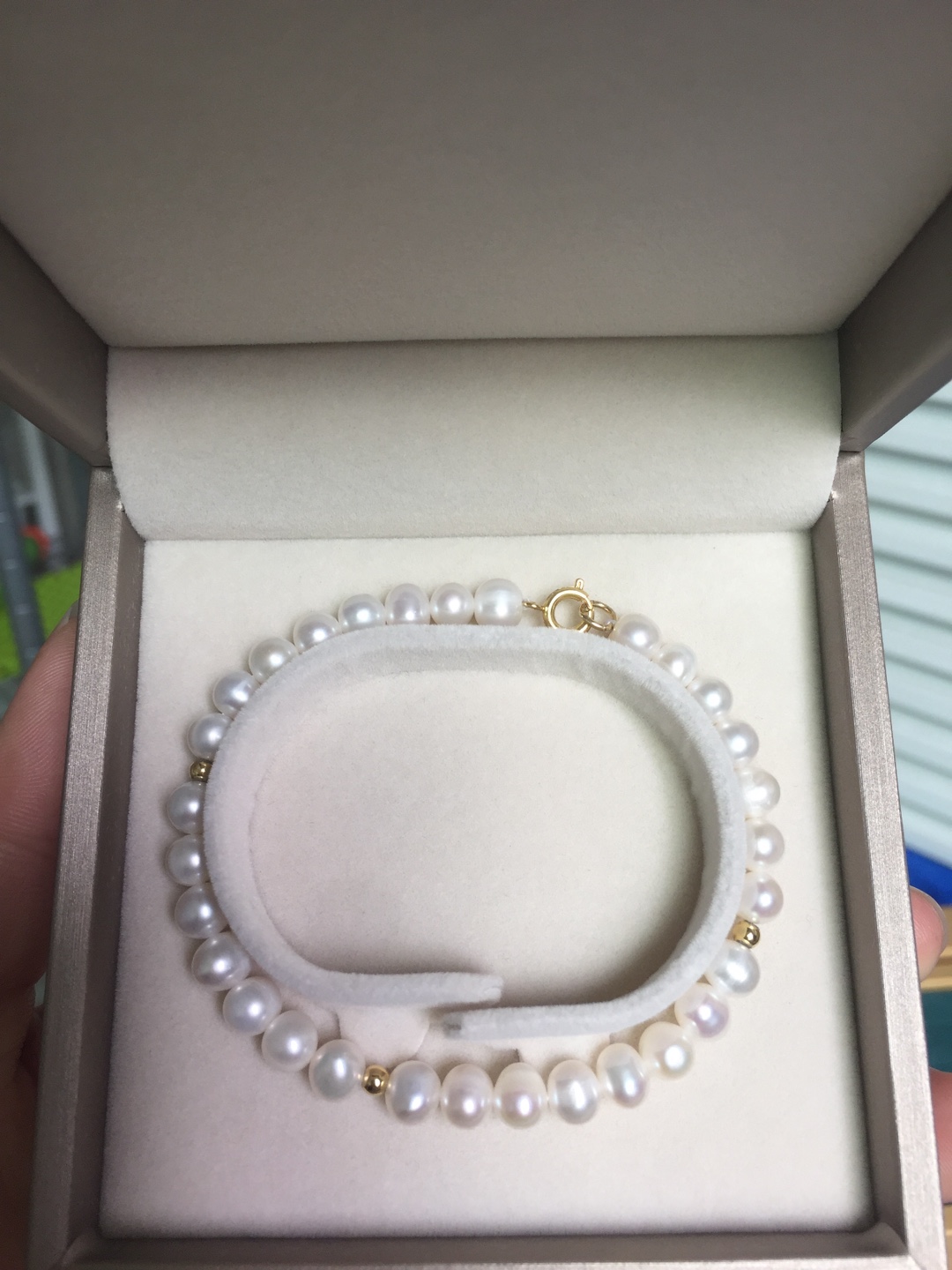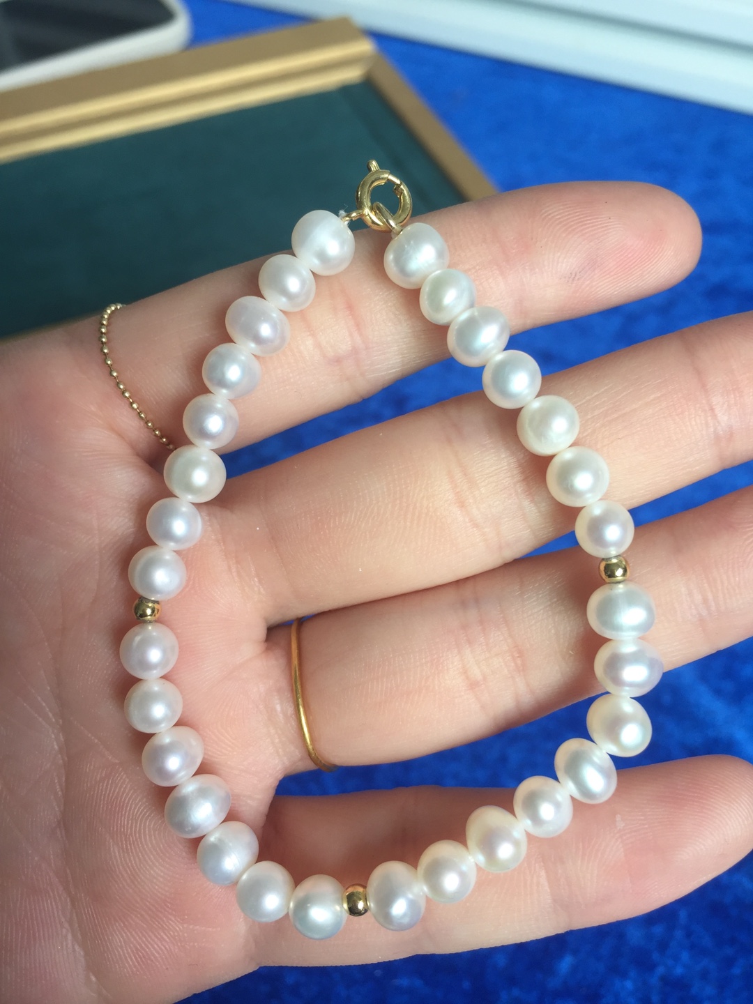 Bracelets de perles, perle d'eau douce cultivée, avec alliage de zinc, Légèrement rond, Placage de couleur d'or, pour femme, blanc, About:6-7MM, Longueur:12 cm, Vendu par PC
