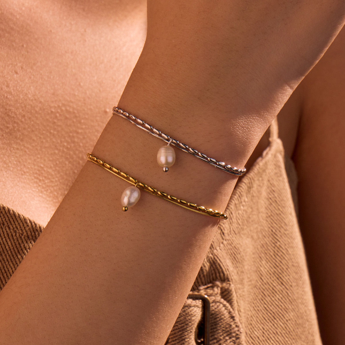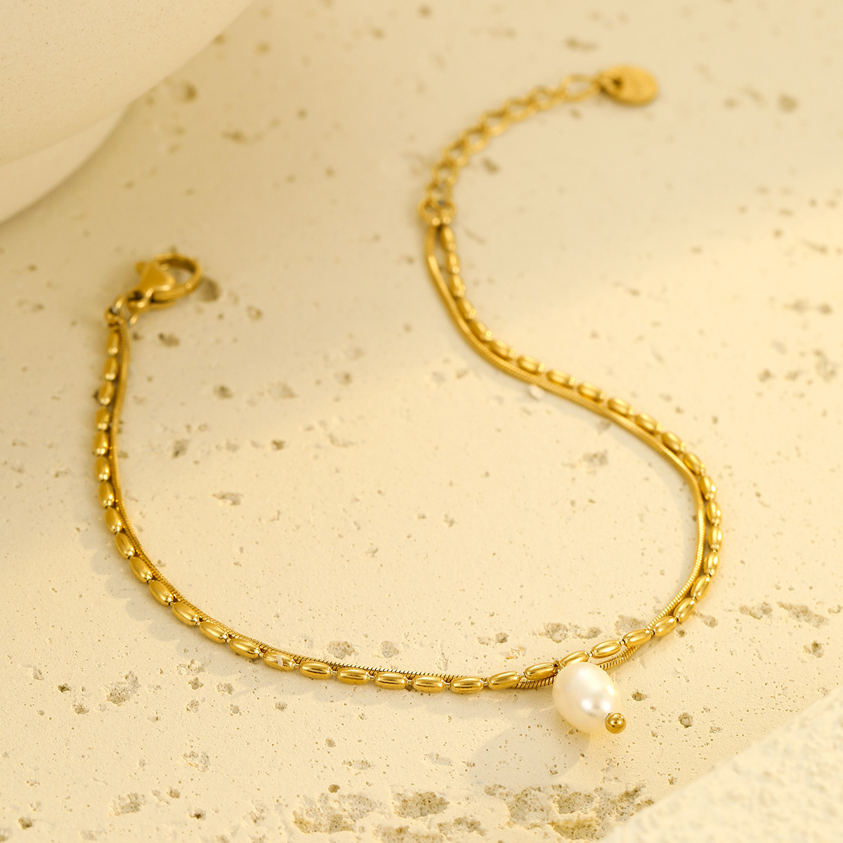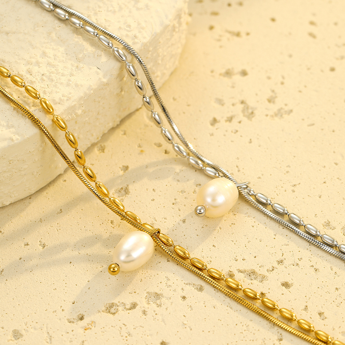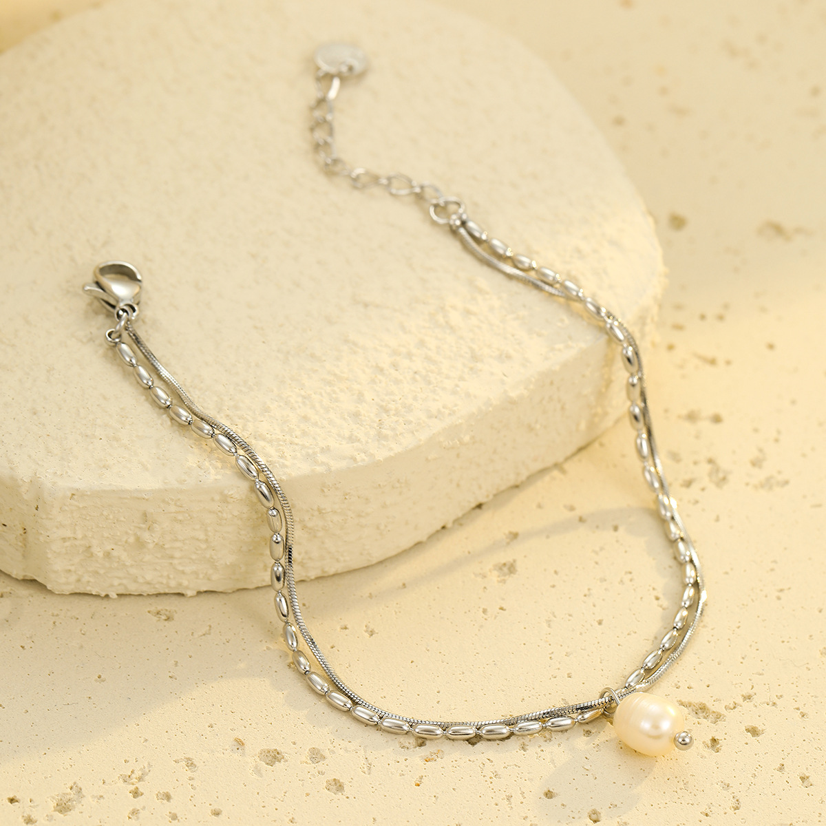Bracelets de perles, Acier inoxydable 304, avec perle d'eau douce cultivée, Placage, Double couche & bijoux de mode & pour femme, plus de couleurs à choisir, Vendu par PC