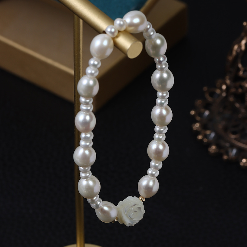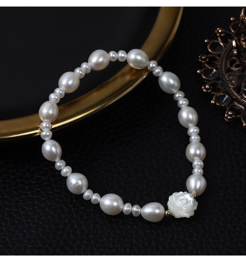 Bracelets de perles, perle d'eau douce cultivée, avec coquille, Baroque, bijoux de mode, blanc, 6-7mm, Longueur:17 cm, Vendu par PC