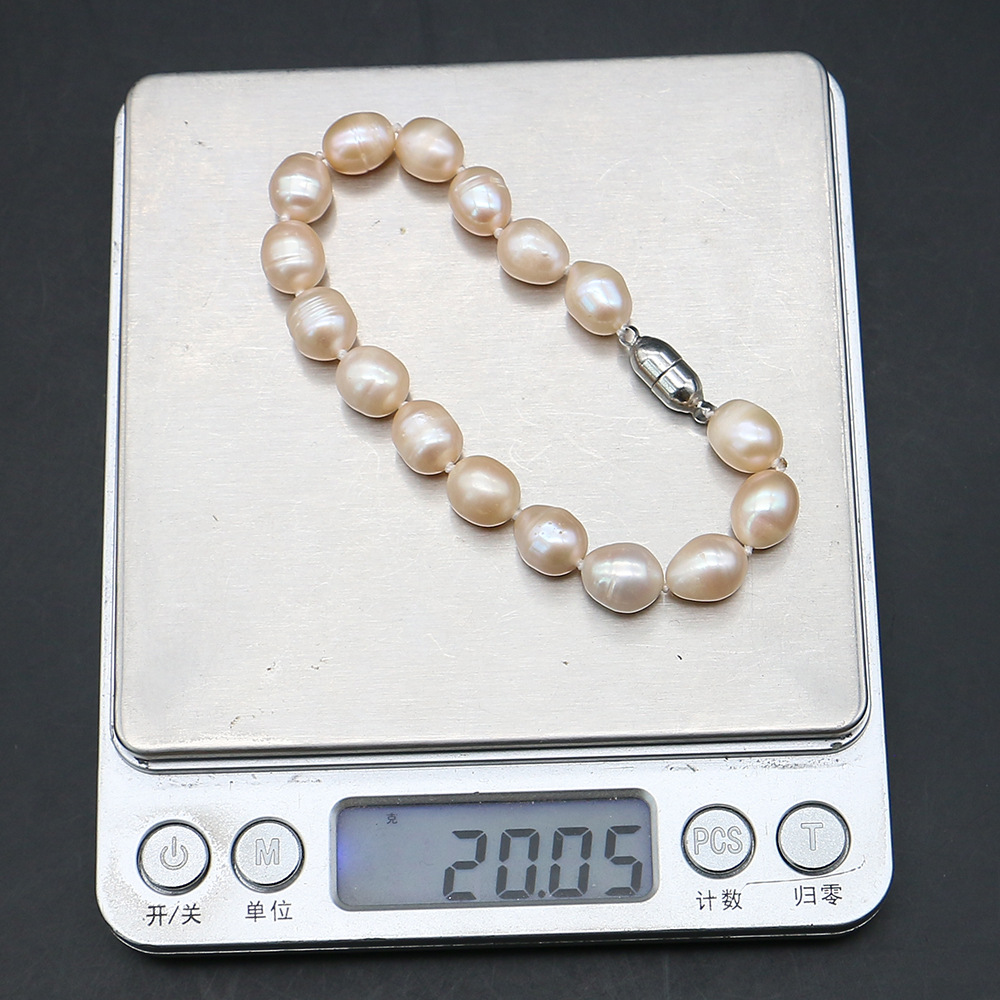 Bracelets de perles, perle d'eau douce cultivée, pomme de terre, naturel, rose, 7-8mm Environ 7.5 pouce, Vendu par brin