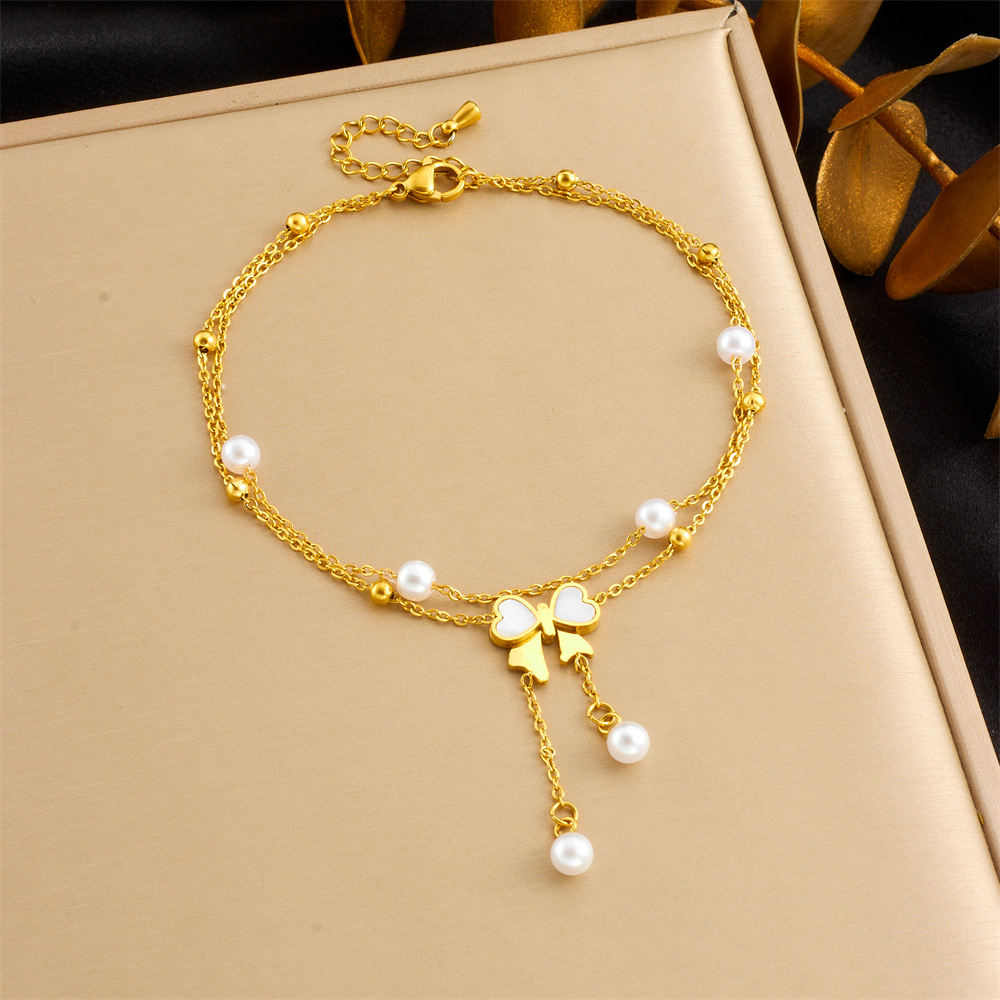 Bracelets en acier inoxydable bijoux, Acier inoxydable 304, avec coquille blanche & perle de plastique, Placage de couleur d'or, Double couche & styles différents pour le choix & pour femme, Vendu par PC