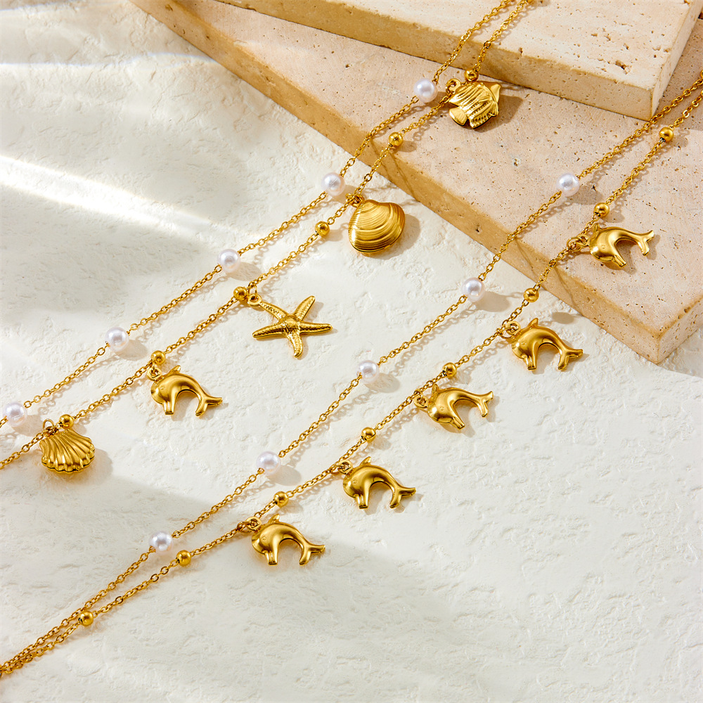 Bracelets en acier inoxydable bijoux, Acier inoxydable 304, avec perle de plastique, Placage de couleur d'or, Double couche & styles différents pour le choix & pour femme, Vendu par PC