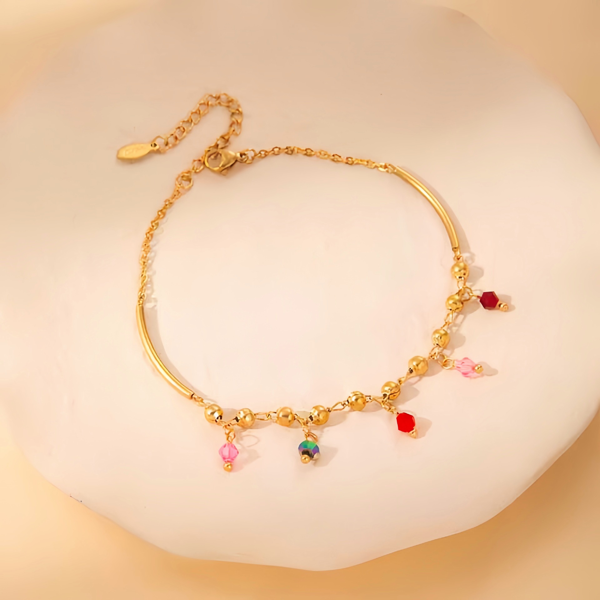 Acier titane bracelet de cheville, avec Acrylique, avec 2inch chaînes de rallonge, Plaqué de couleur d'or rose, chaîne ovale & pour femme & avec zircone cubique, 6mm, 8mm Environ 8 pouce, Vendu par brin