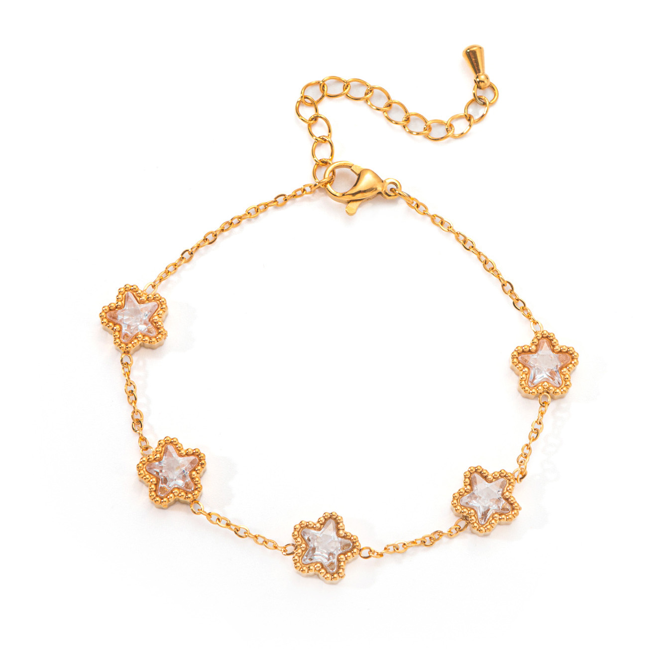 Bracelets en acier inoxydable, Acier inoxydable 304, avec 4cm chaînes de rallonge, styles différents pour le choix & pavé de micro zircon & pour femme, doré, Longueur:Environ 16.5 cm, Vendu par PC