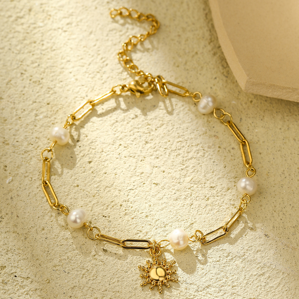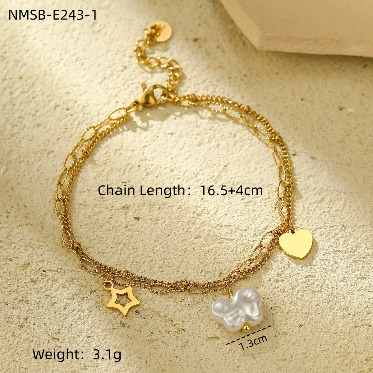 Bracelets en acier inoxydable, Acier inoxydable 304, avec Shell Pearl, Plaqué or 18K, bijoux de mode & styles différents pour le choix & pour femme, Vendu par PC