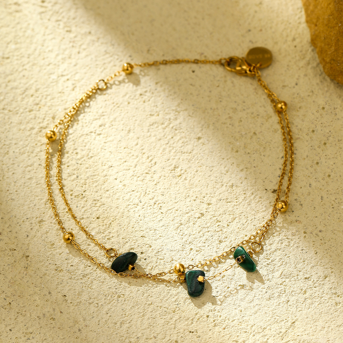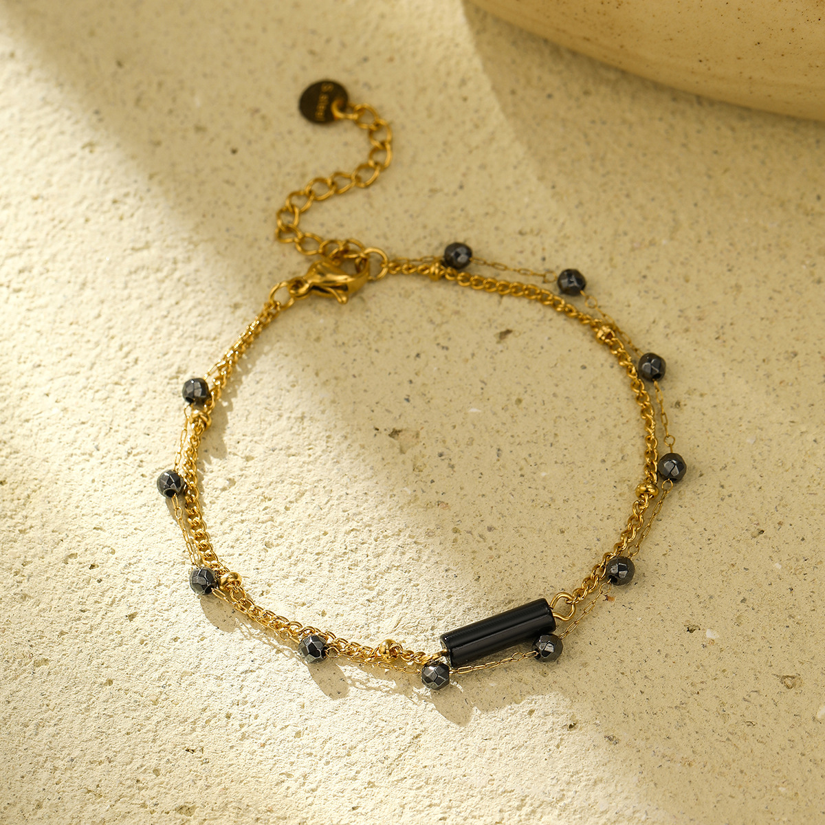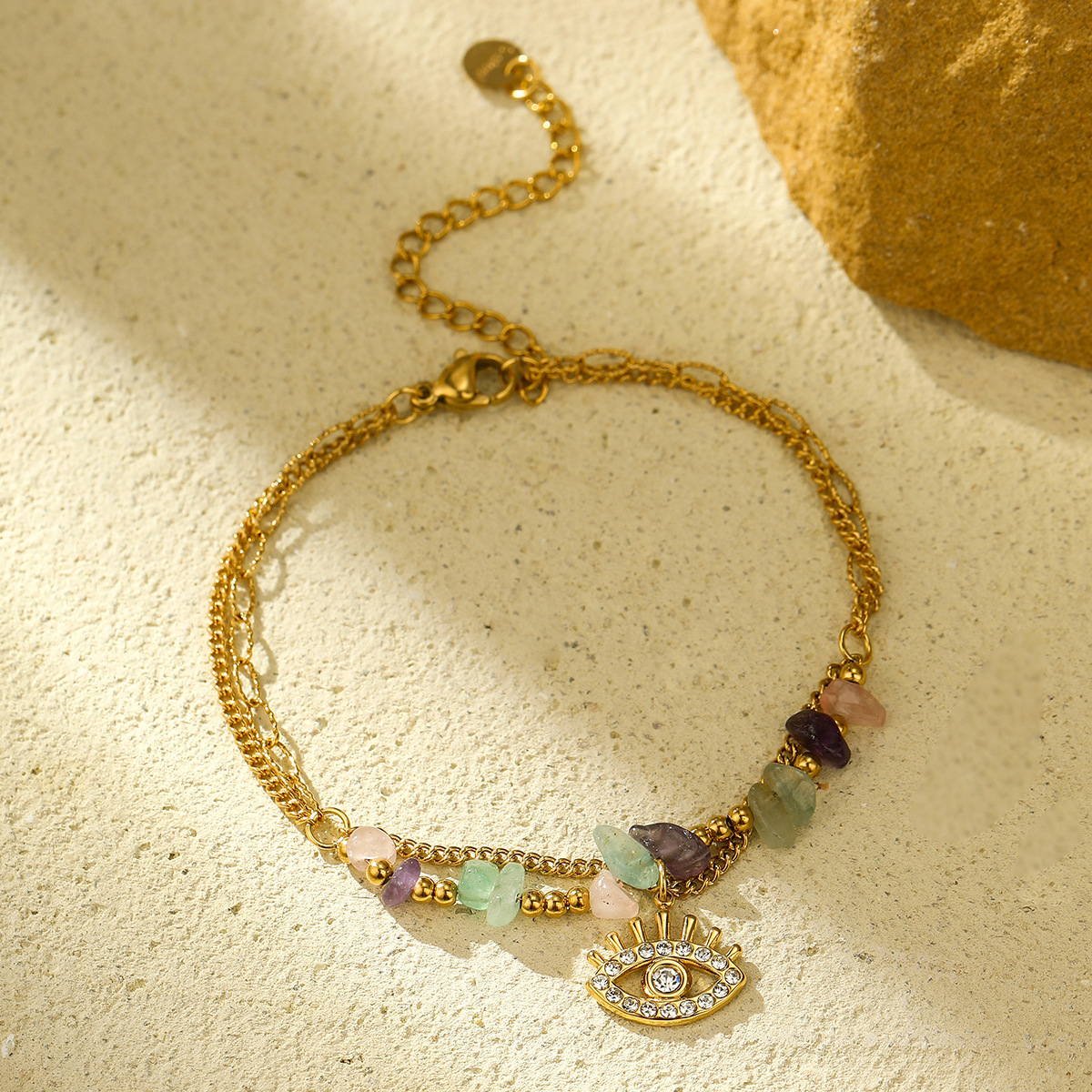 acier inoxydable bracelet, avec cuir PU & pierre gemme, différents matériaux pour le choix & unisexe, couleur originale, 8mm, 6mm Environ 8 pouce, Vendu par brin