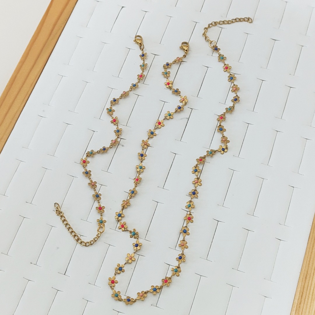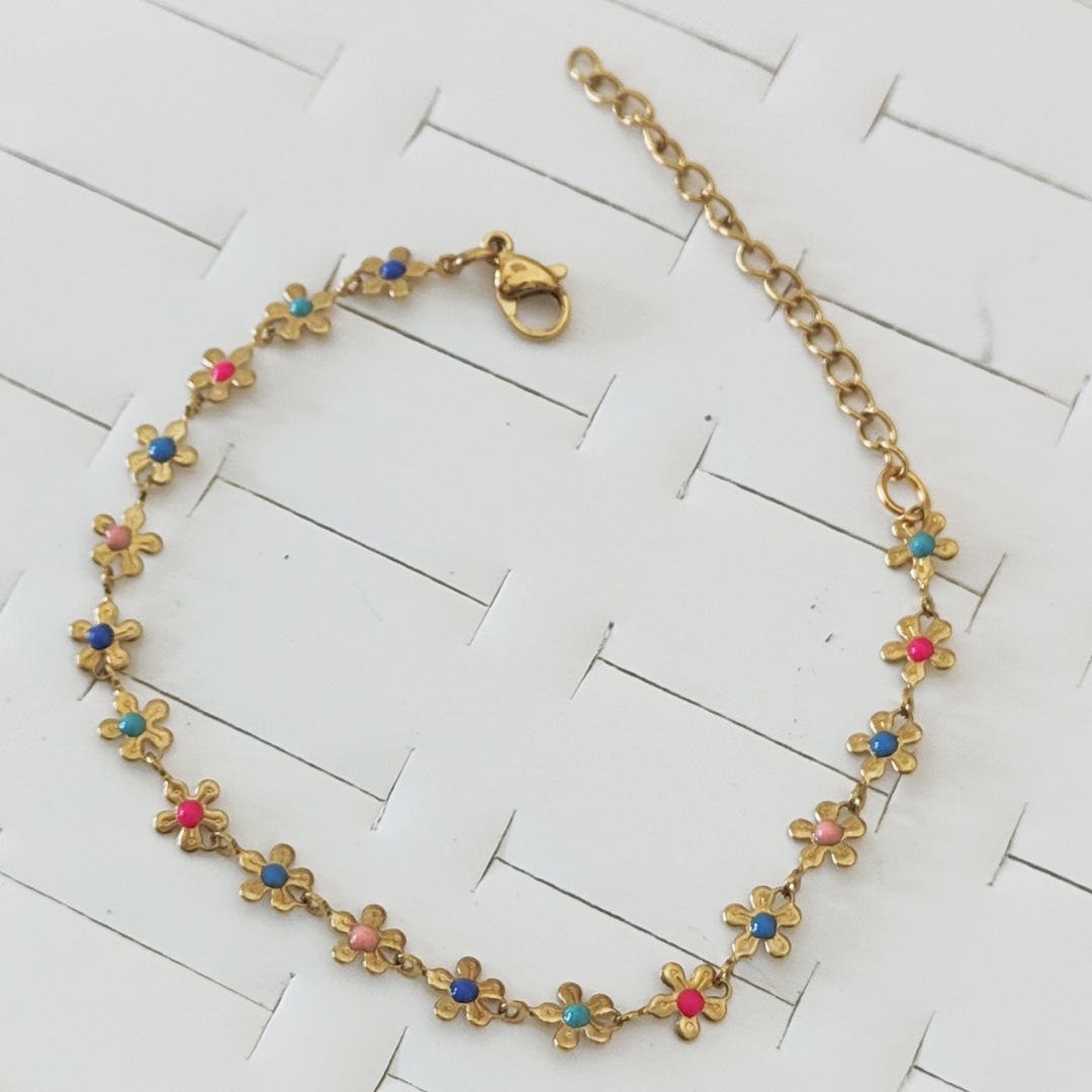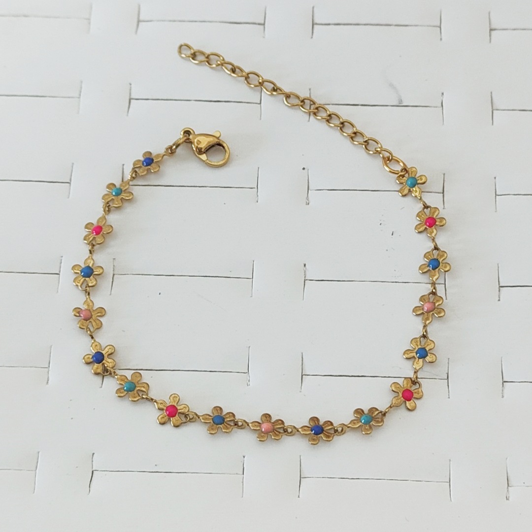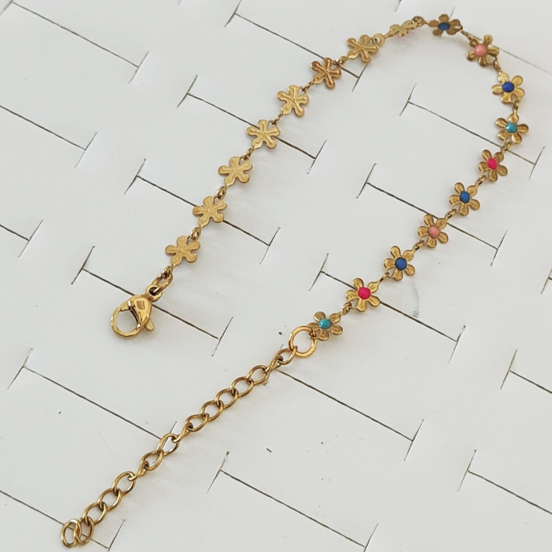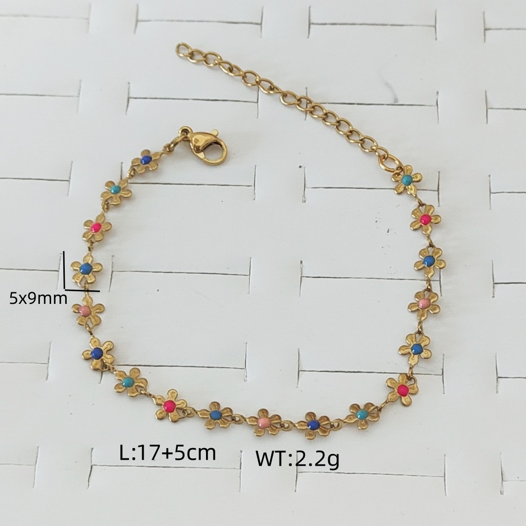 Bracelets en acier inoxydable, Acier inoxydable 304, fleur, Placage de couleur d'or, pour femme & émail, multicolore, Vendu par PC