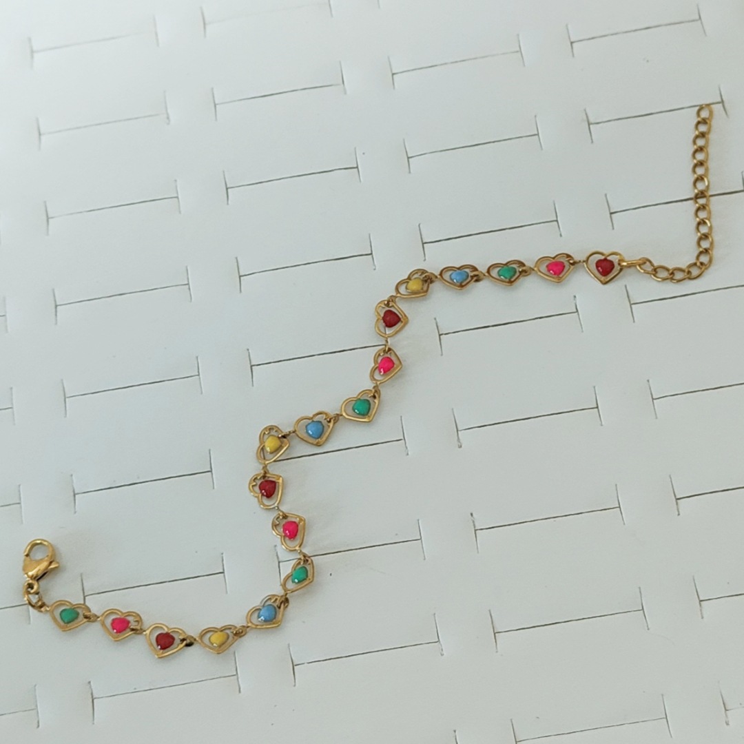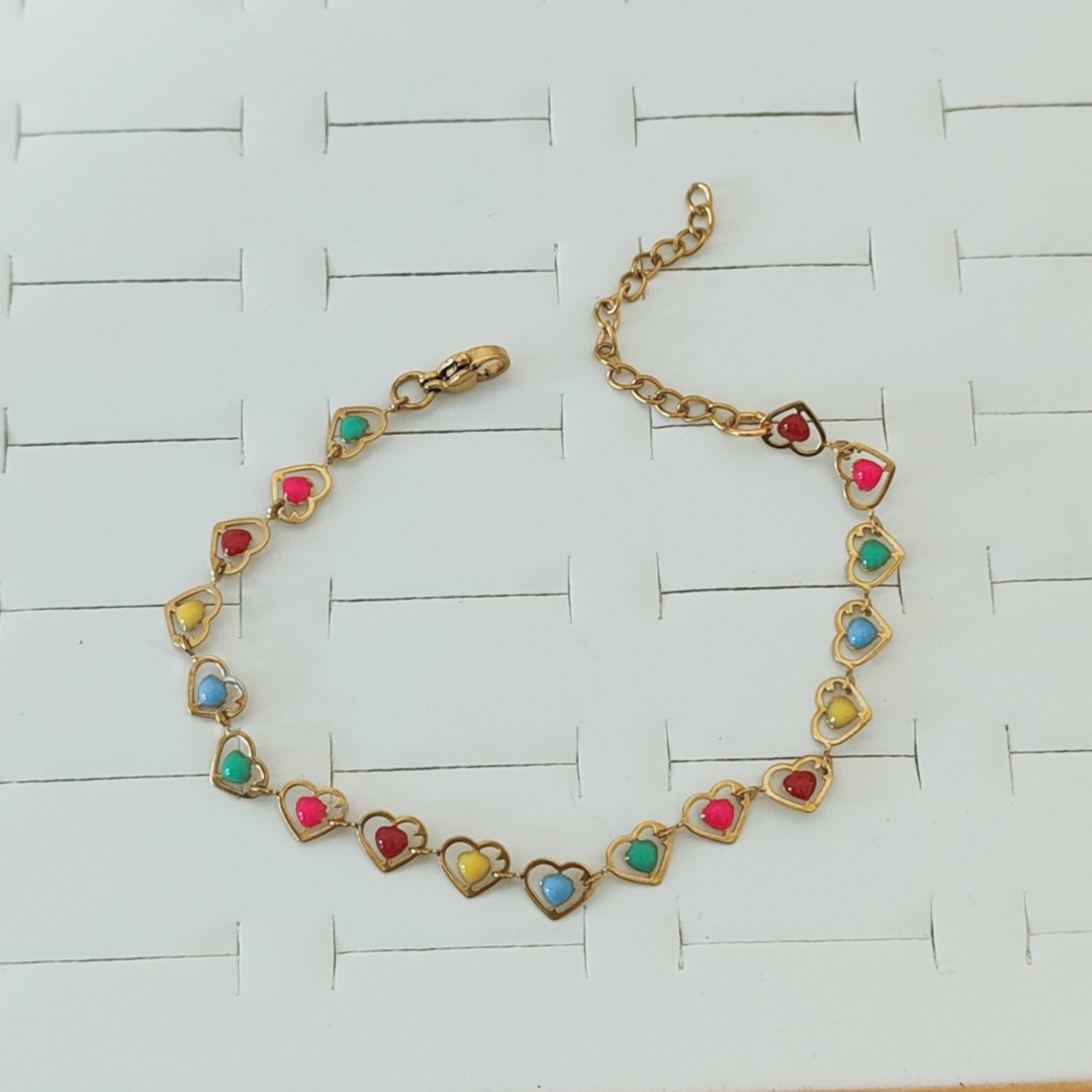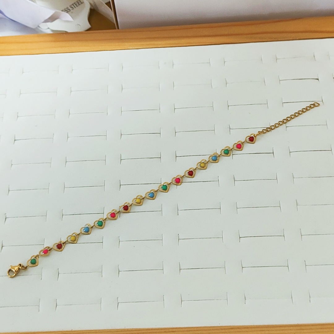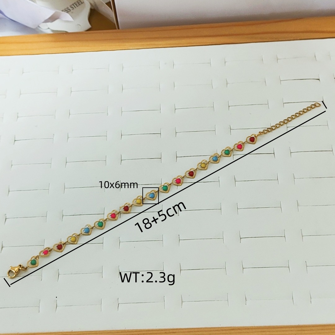 Bracelets en acier inoxydable, Acier inoxydable 304, coeur, Placage de couleur d'or, pour femme & émail, multicolore, Vendu par PC