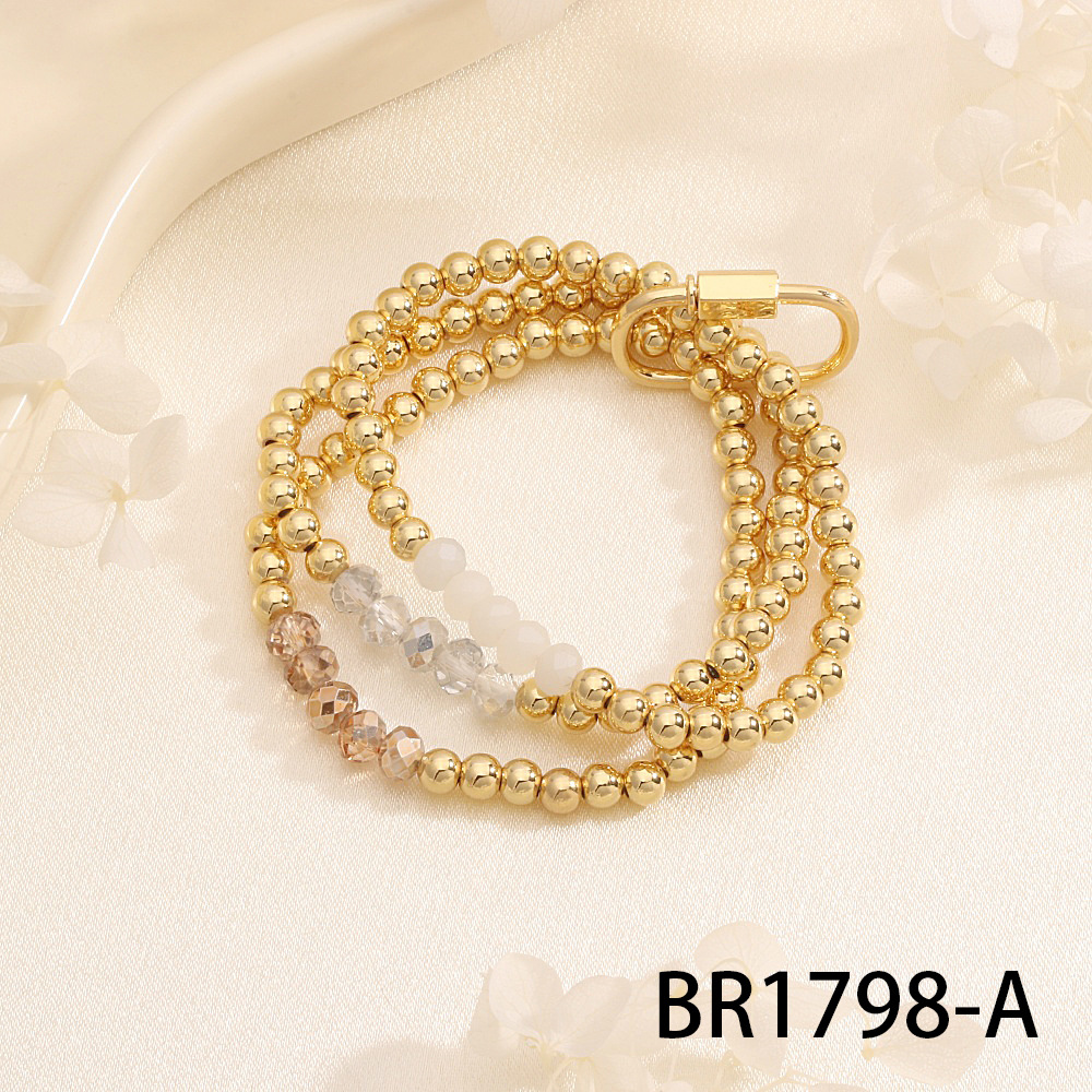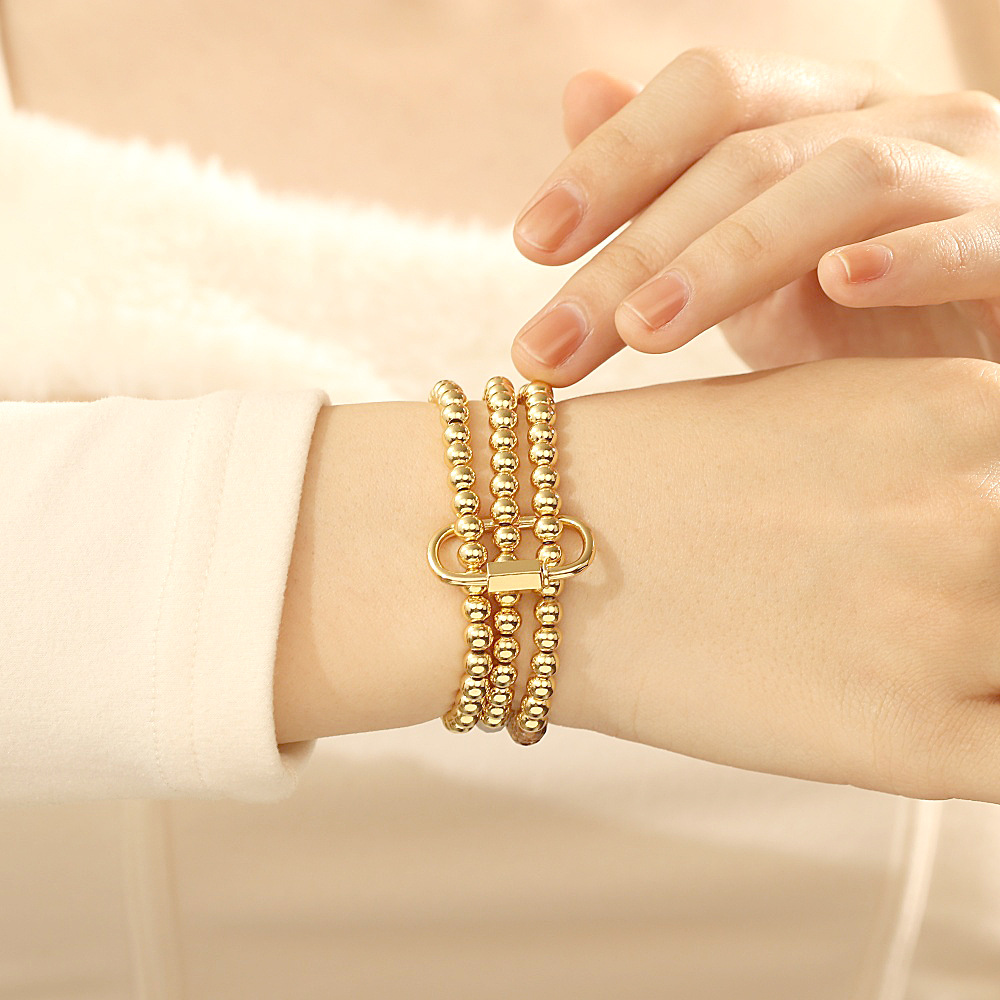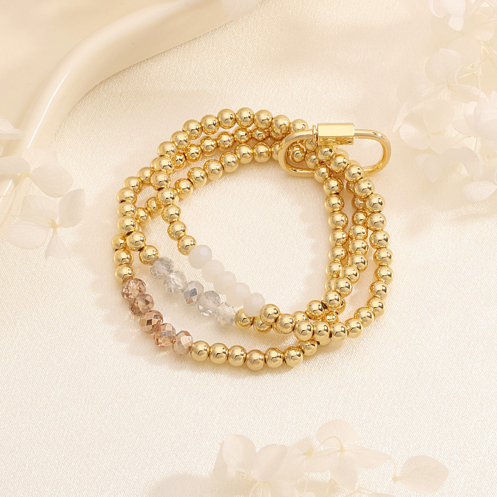 Bracelets en acier inoxydable, Acier inoxydable 304, avec fil élastique & cristal, Placage de couleur d'or, trois couches & pour femme, plus de couleurs à choisir, Longueur:14 cm, Vendu par PC
