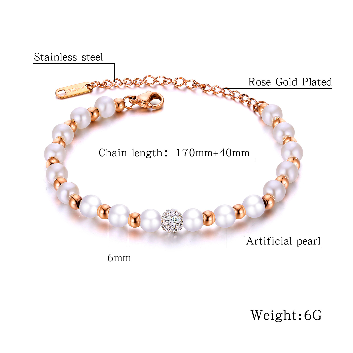 Bracelets en acier inoxydable, Acier inoxydable 304, avec perle de plastique, Placage, bijoux de mode & pavé de micro zircon & pour femme, plus de couleurs à choisir, Vendu par PC