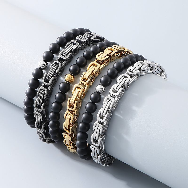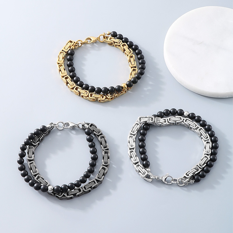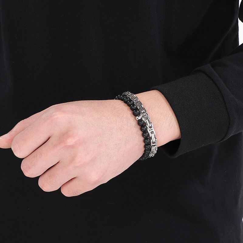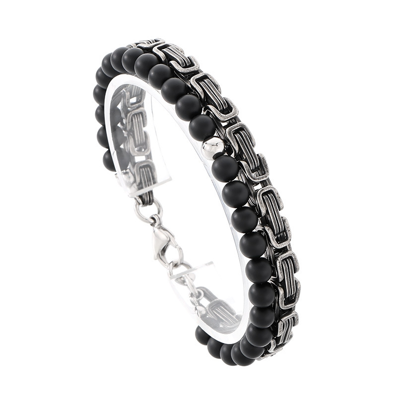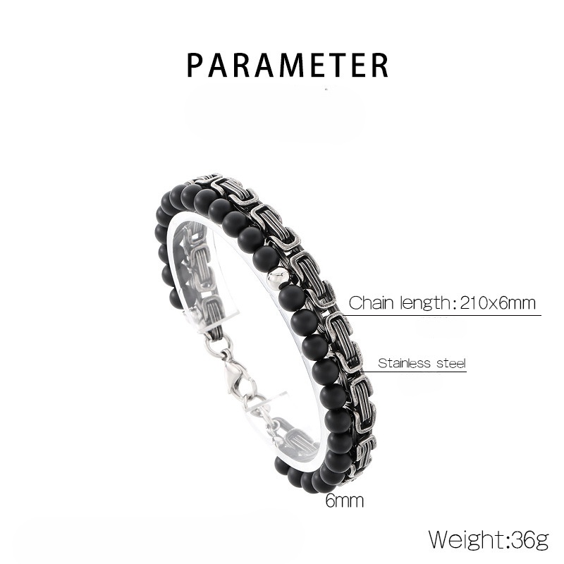 acier inoxydable bracelet, avec cuir PU & pierre gemme, différents matériaux pour le choix & unisexe, couleur originale, 8mm, 6mm Environ 8 pouce, Vendu par brin