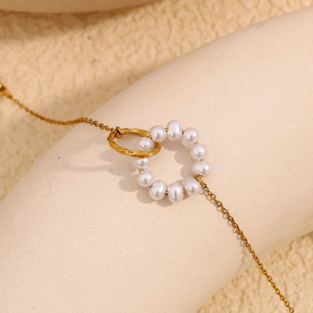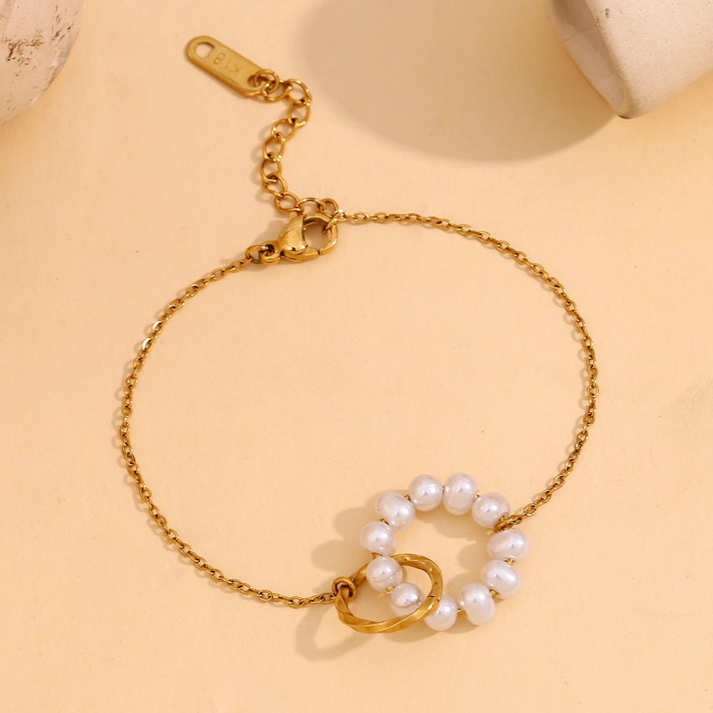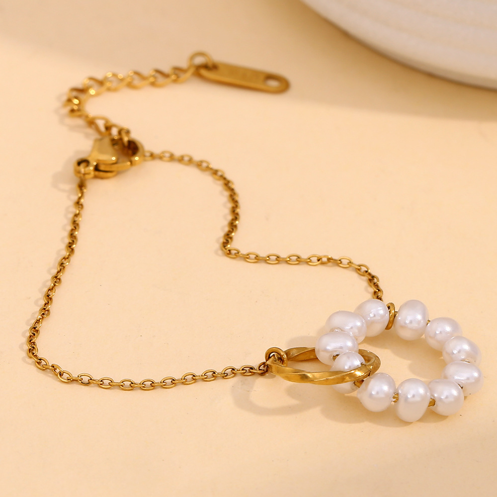 Bracelets en acier inoxydable, Acier inoxydable 304, avec perle de plastique, avec 3cm chaînes de rallonge, Plaqué or 18K, bijoux de mode & pour femme & creux, Longueur:16 cm, Vendu par PC