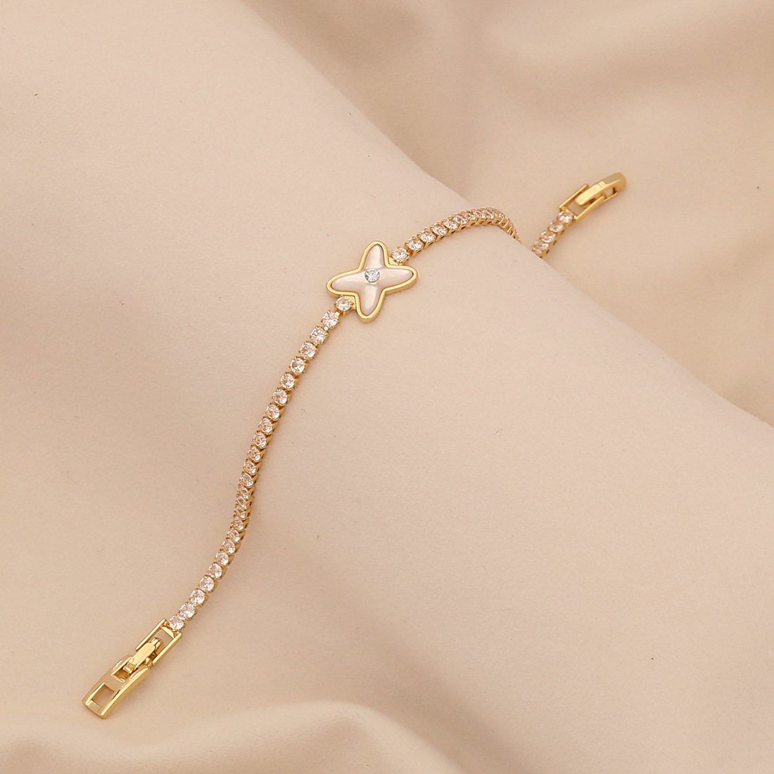Bracelets en acier inoxydable, laiton, avec zircon cubique, Placage, bijoux de mode & styles différents pour le choix & pour femme, doré, Vendu par PC