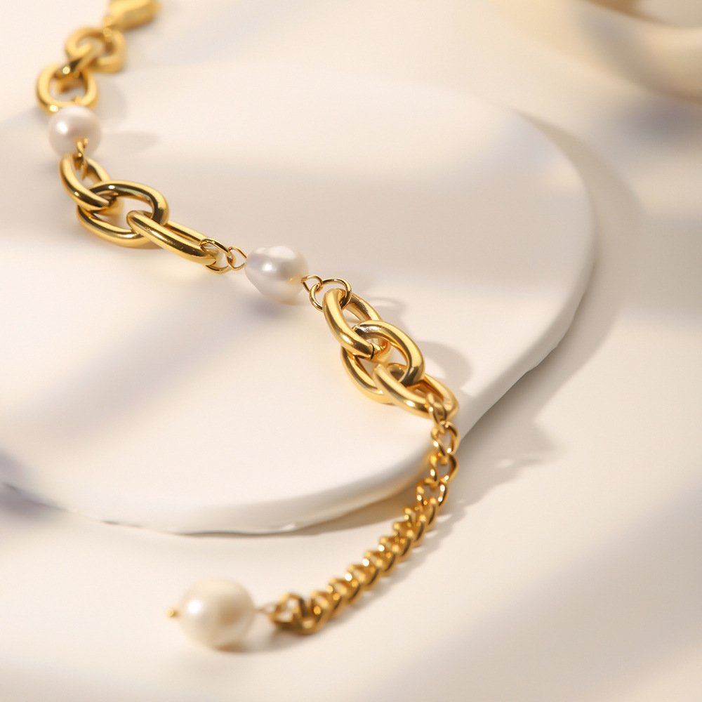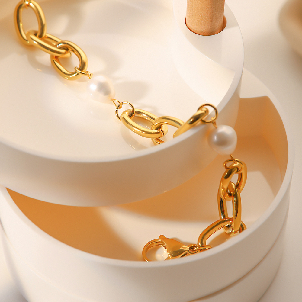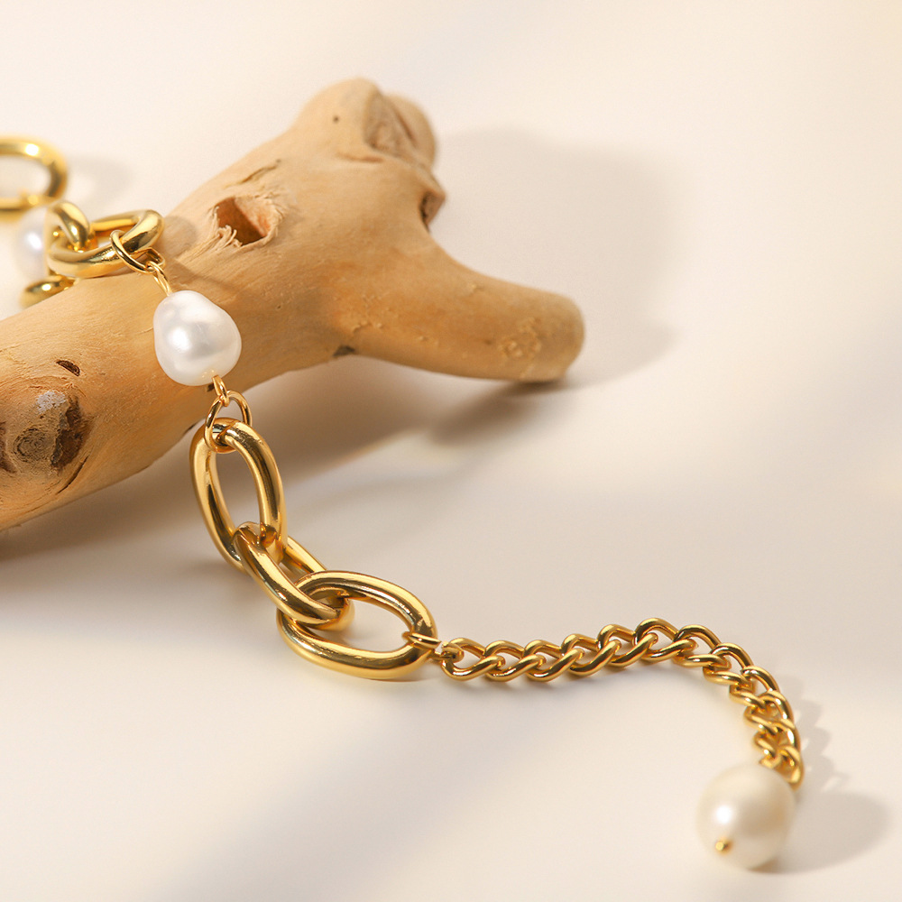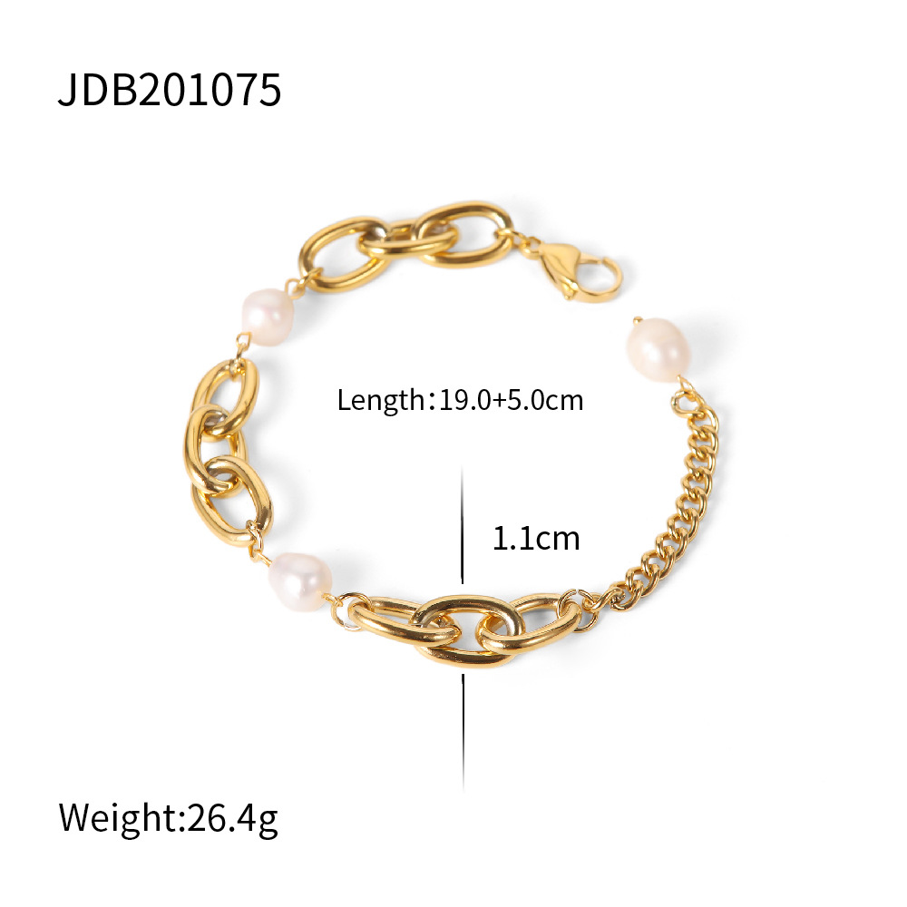 Bracelets en acier inoxydable, Acier inoxydable 304, avec perle d'eau douce cultivée, avec 5cm chaînes de rallonge, bijoux de mode & pour femme, doré, Longueur:19 cm, Vendu par PC