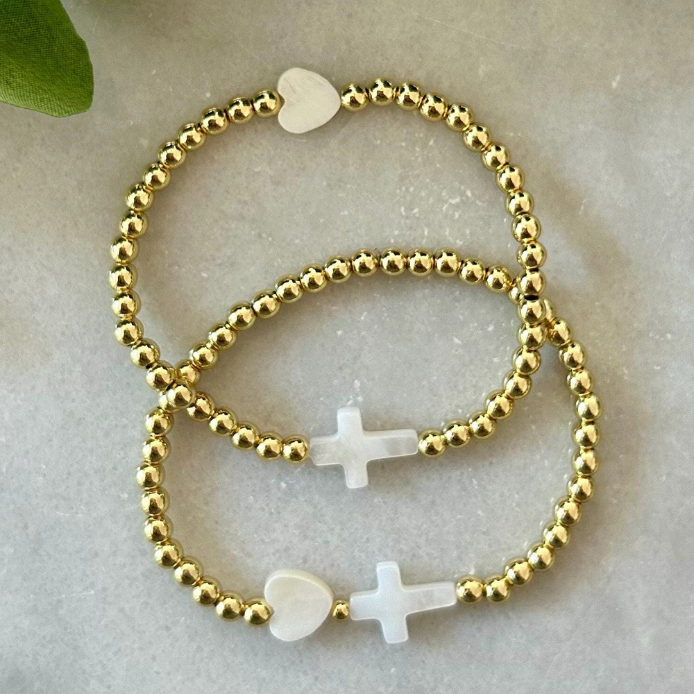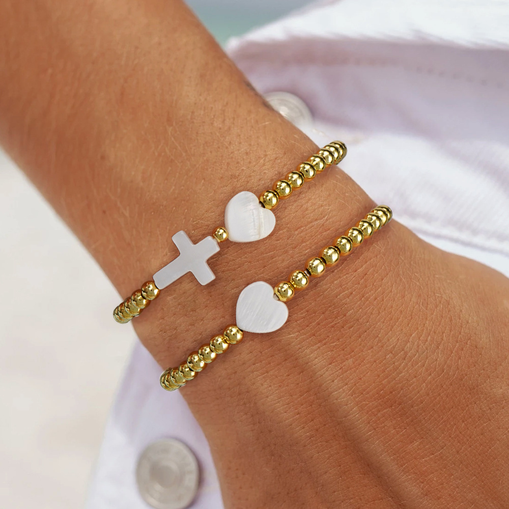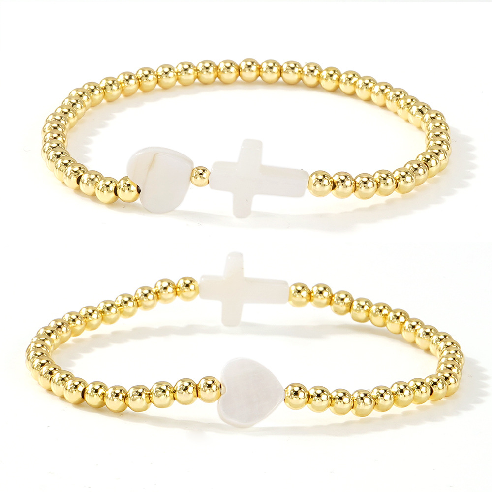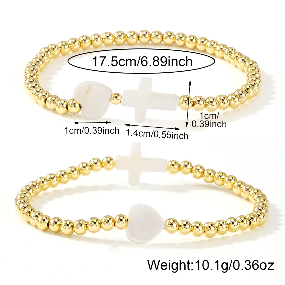 Bracelets en acier inoxydable, Acier inoxydable 304, avec coquille, coeur, Placage de couleur d'or, 2 pièces & pour femme, Vendu par fixé