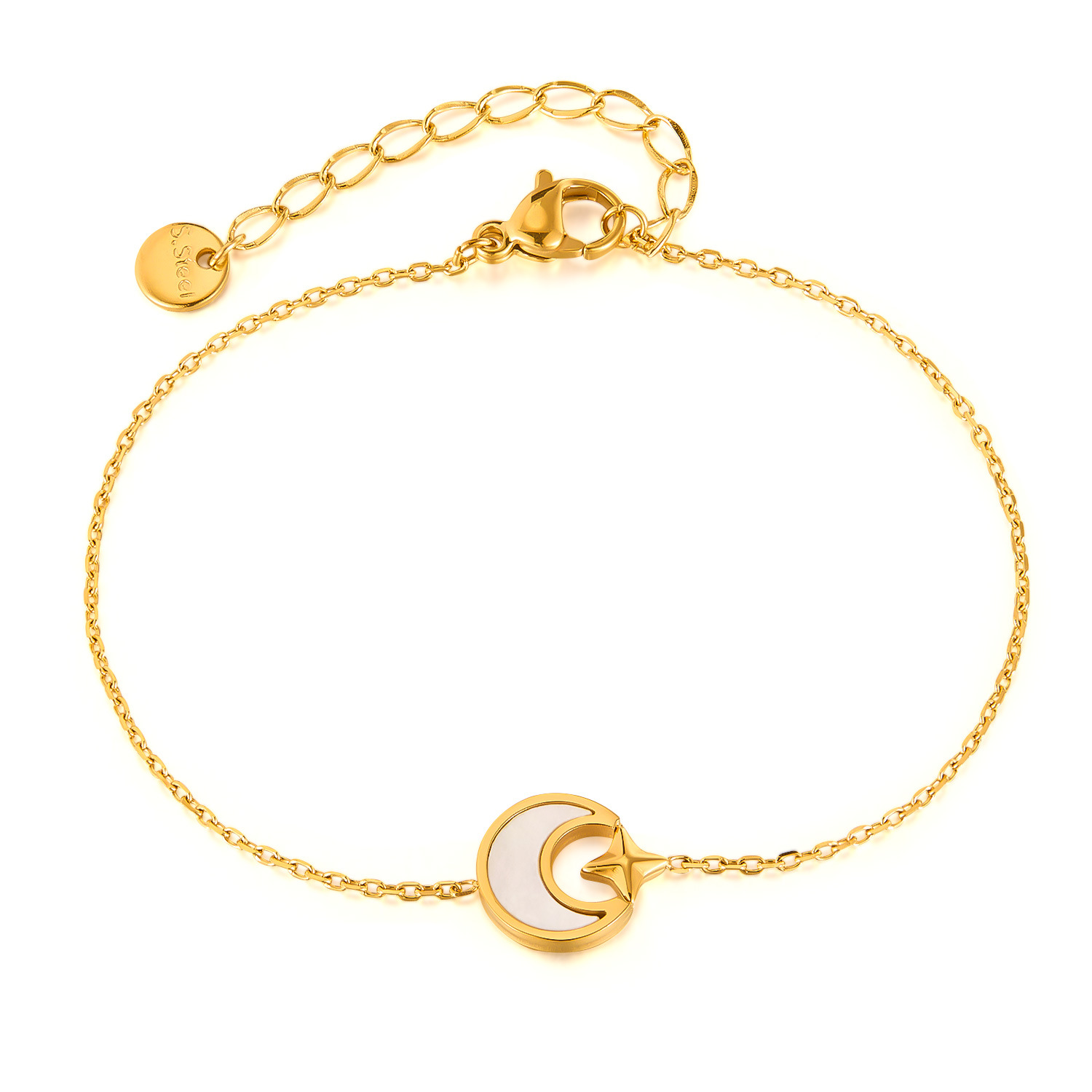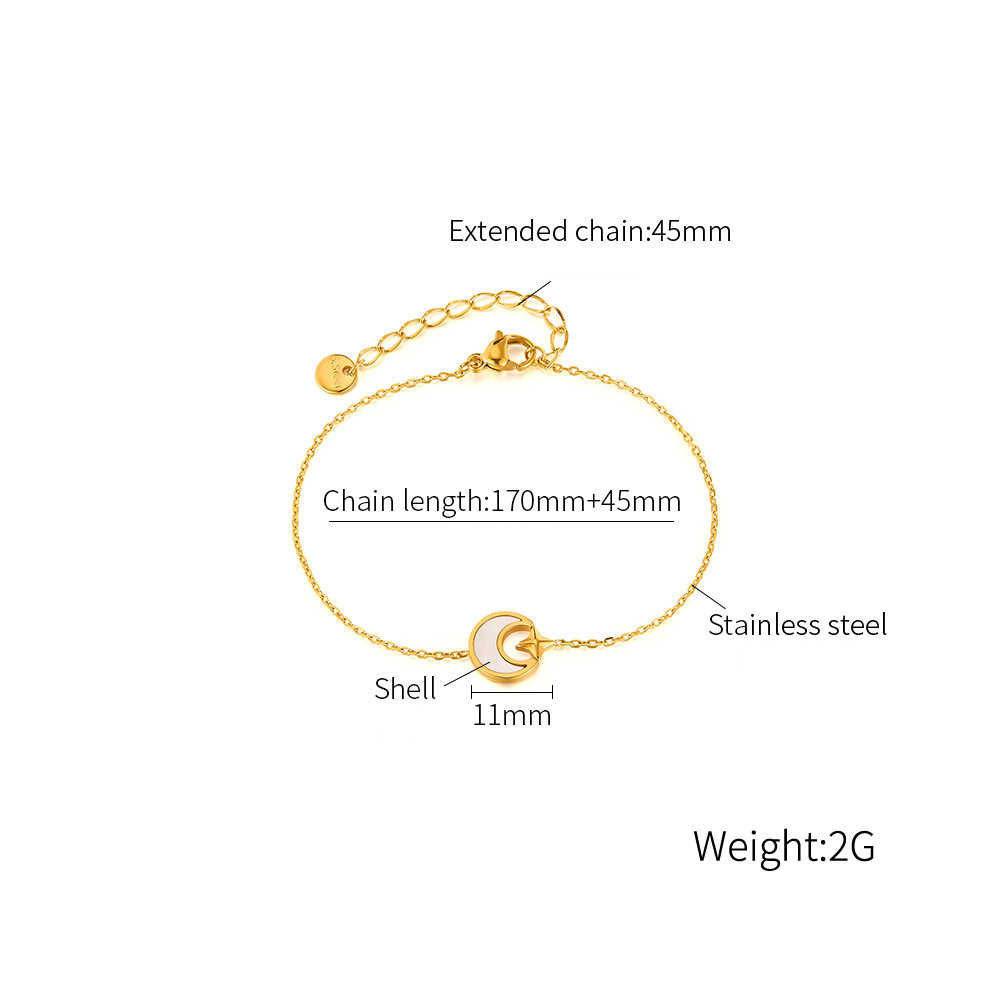 Bracelets en acier inoxydable, Acier inoxydable 304, avec coquille, avec 45mm chaînes de rallonge, Placage, bijoux de mode & pour femme, doré, Longueur:170 mm, Vendu par PC