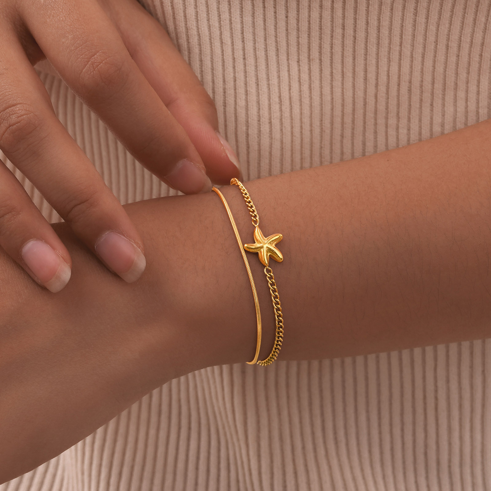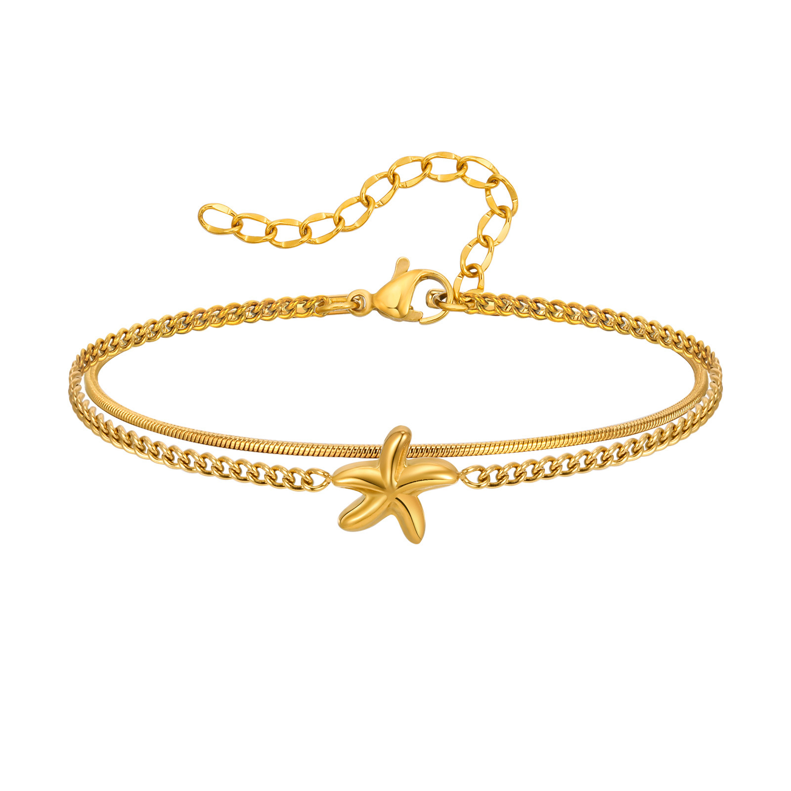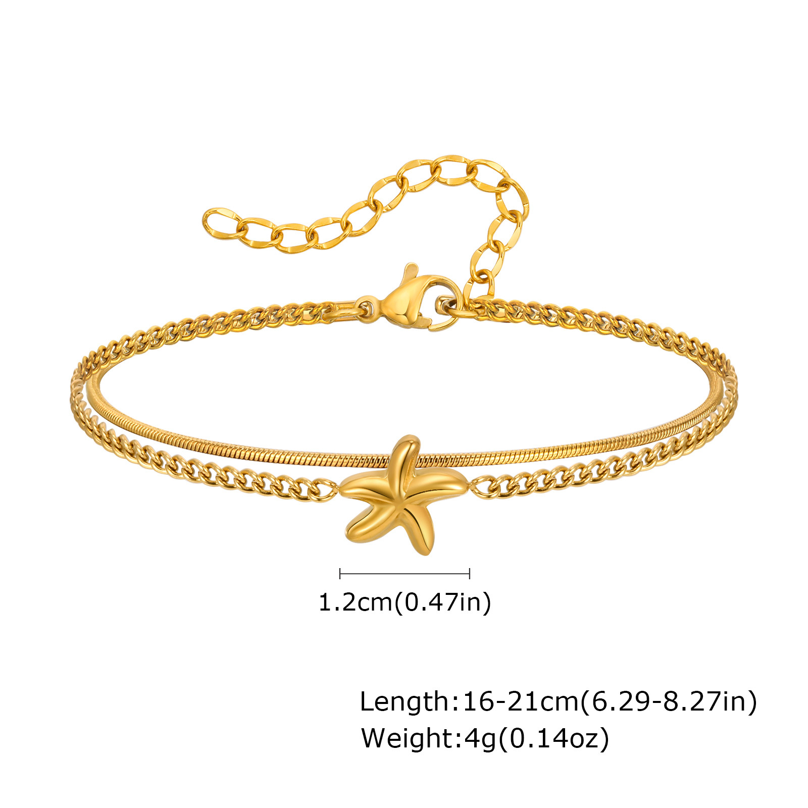Bracelets en acier inoxydable, Acier inoxydable 304, Placage, Double couche & bijoux de mode & pour femme, doré, Longueur:6.29-8.27 pouce, Vendu par PC