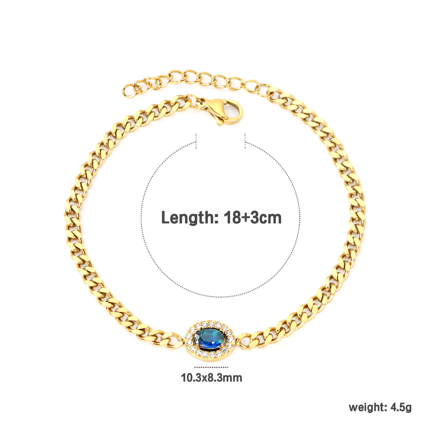 Bracelets en acier inoxydable, Acier inoxydable 304, avec zircon cubique, avec 3cm chaînes de rallonge, Plaqué or 18K, bijoux de mode & pour femme & avec strass, Longueur:18 cm, Vendu par PC