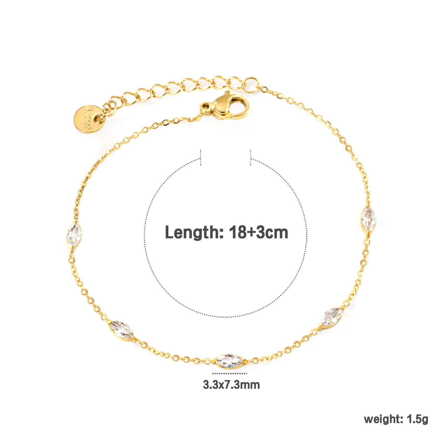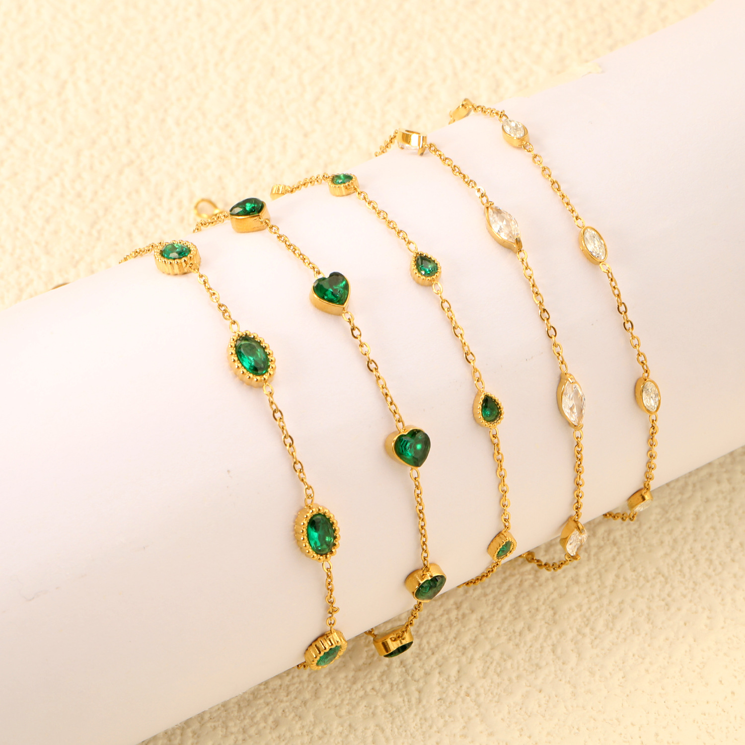 Bracelets en acier inoxydable, Acier inoxydable 304, avec zircon cubique, Placage de couleur d'or, bijoux de mode & styles différents pour le choix & pour femme, Vendu par PC