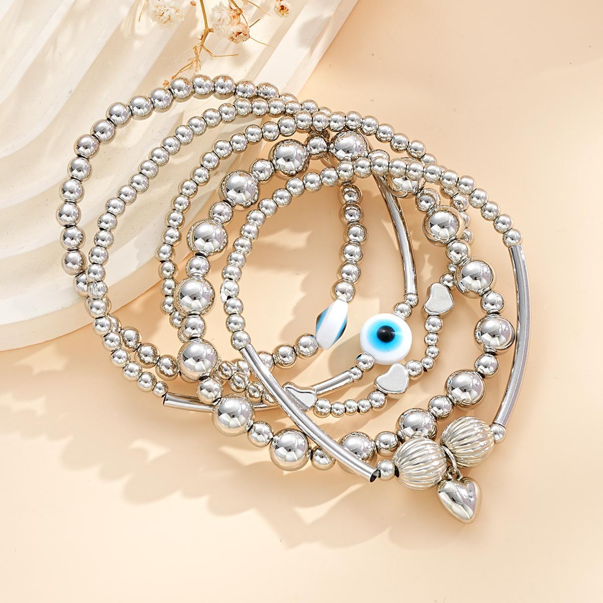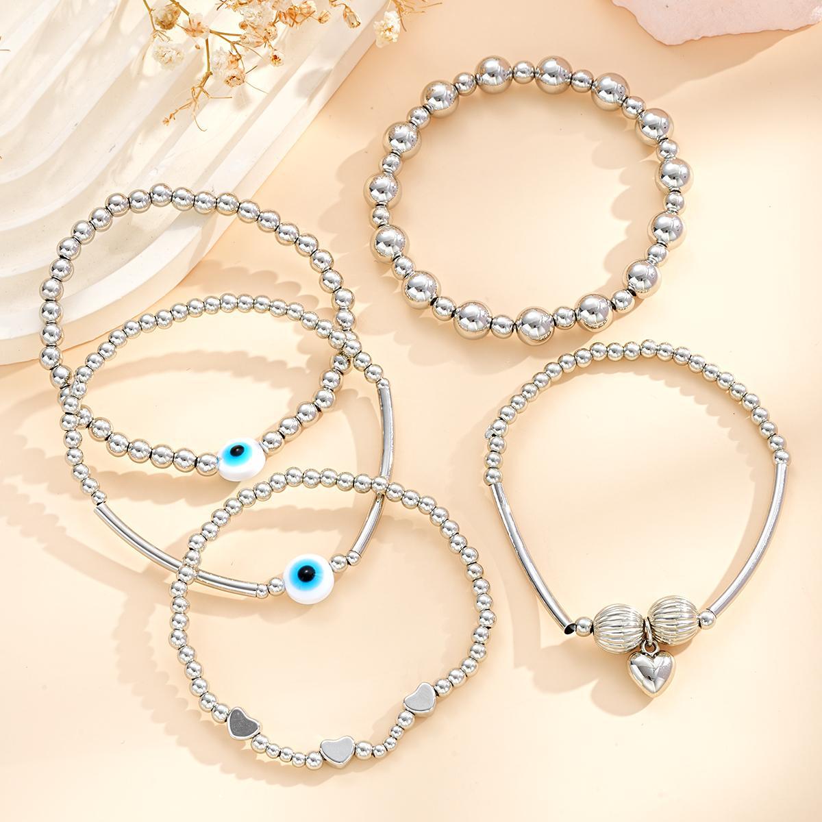 Bracelets en acier inoxydable, alliage de zinc, avec fil élastique & plastique revêtu de cuivre & perle de plastique, Placage, 5 pièces & bijoux de mode & unisexe, couleur originale, Vendu par fixé
