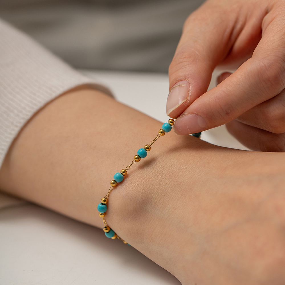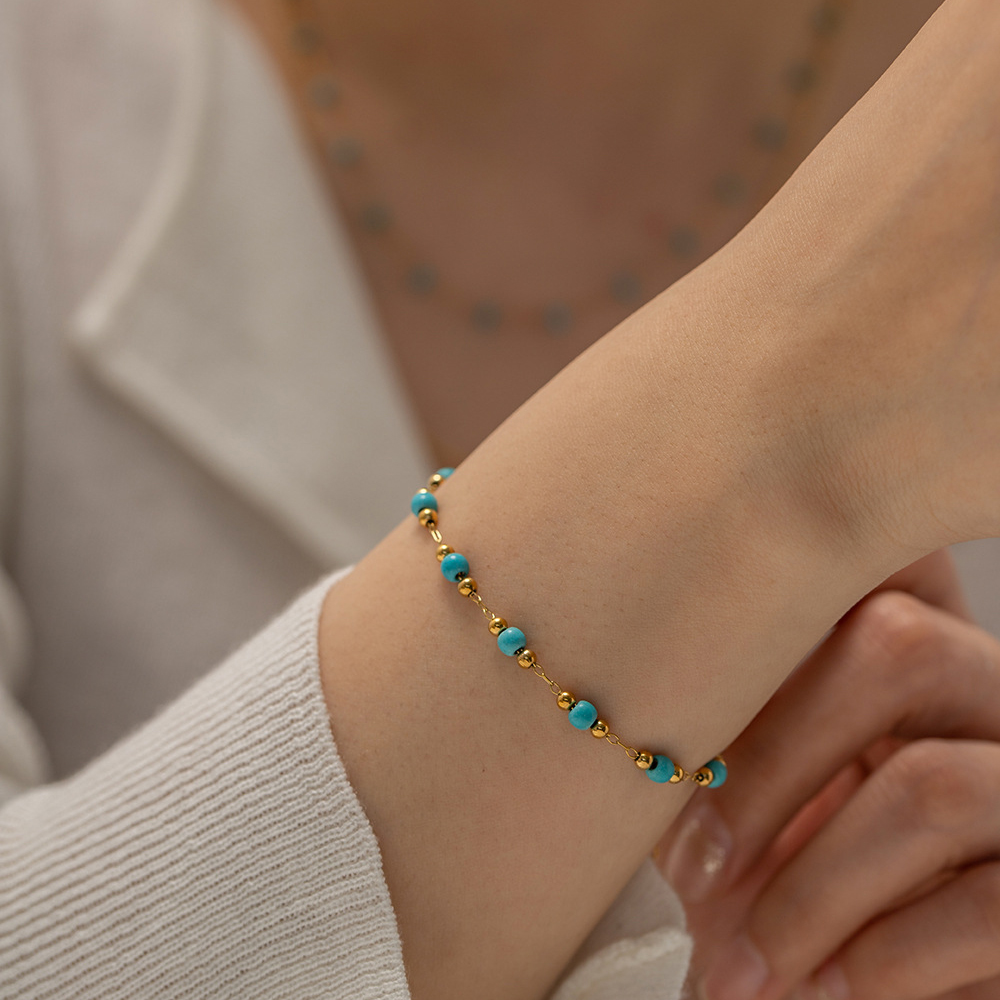 Bracelets en acier inoxydable, Acier inoxydable 304, avec turquoise, Placage de couleur d'or, bijoux de mode & pour femme, Vendu par PC