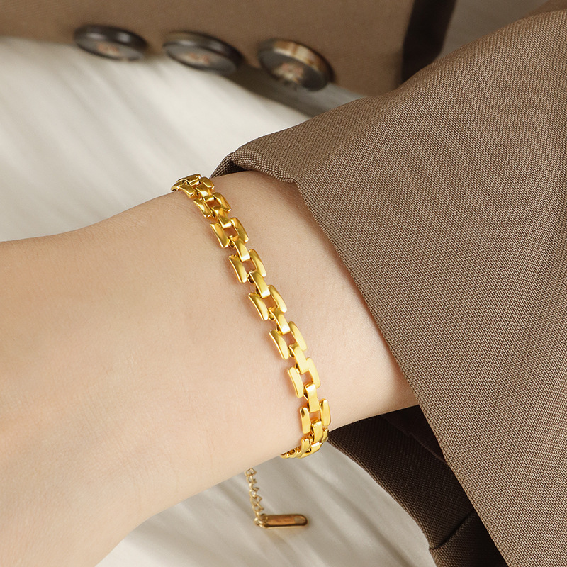 Bracelets en acier inoxydable, Acier inoxydable 304, Plaqué or 18K, bijoux de mode & unisexe, Vendu par PC