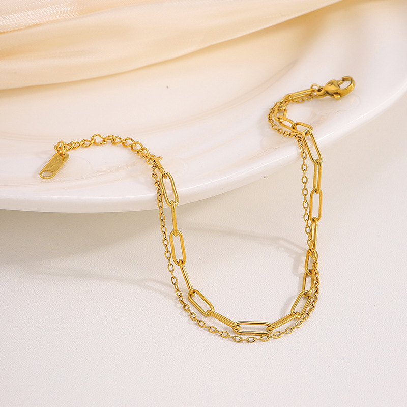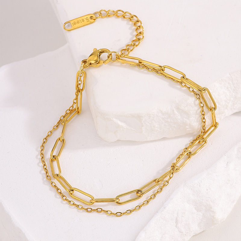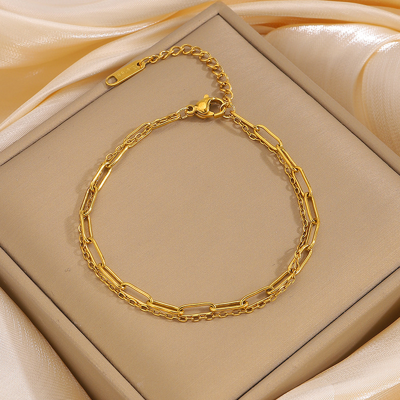 Bracelets en acier inoxydable, Acier inoxydable 304, Placage, Double couche & bijoux de mode & pour femme, doré, Vendu par PC