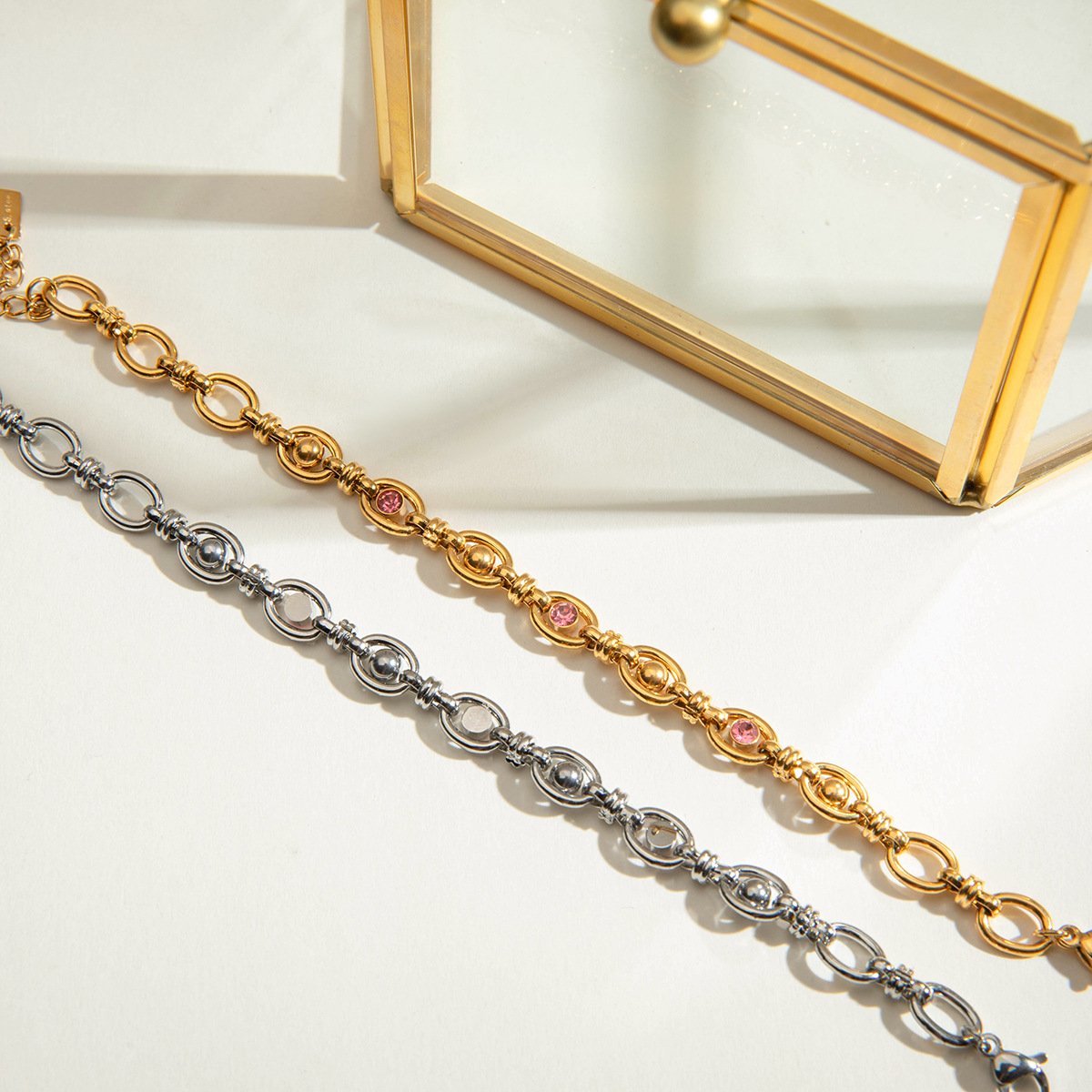 Bracelets en acier inoxydable, chaîne Rolo, plus de couleurs à choisir Environ 8 pouce, Vendu par brin