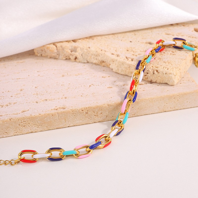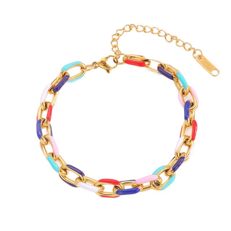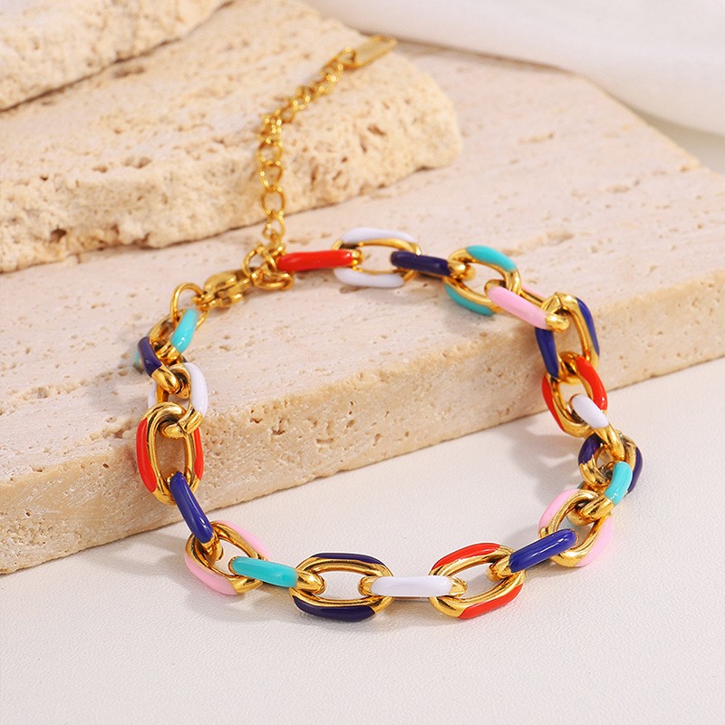 Bracelets en acier inoxydable, Acier inoxydable 304, Placage de couleur d'or, bijoux de mode & pour femme & émail, multicolore, Vendu par PC