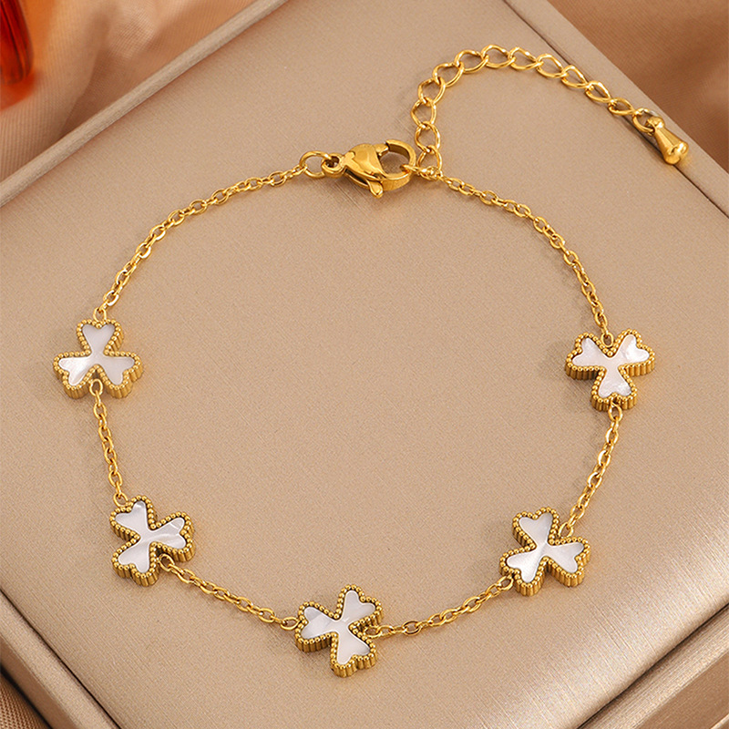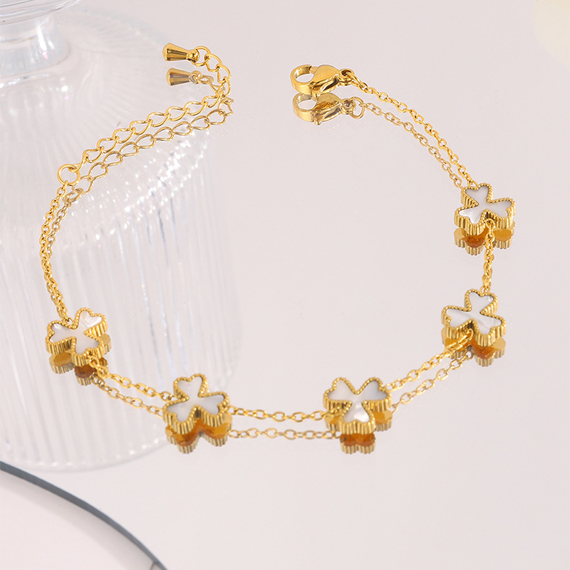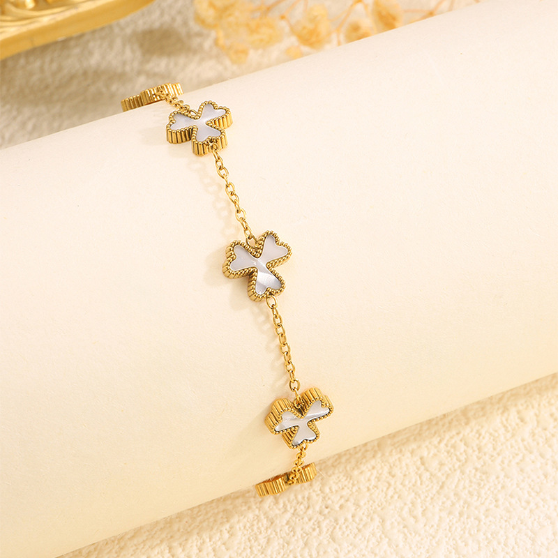Bracelets en acier inoxydable, Acier inoxydable 304, avec coquille blanche, Plaqué or 18K, bijoux de mode & pour femme, Vendu par PC