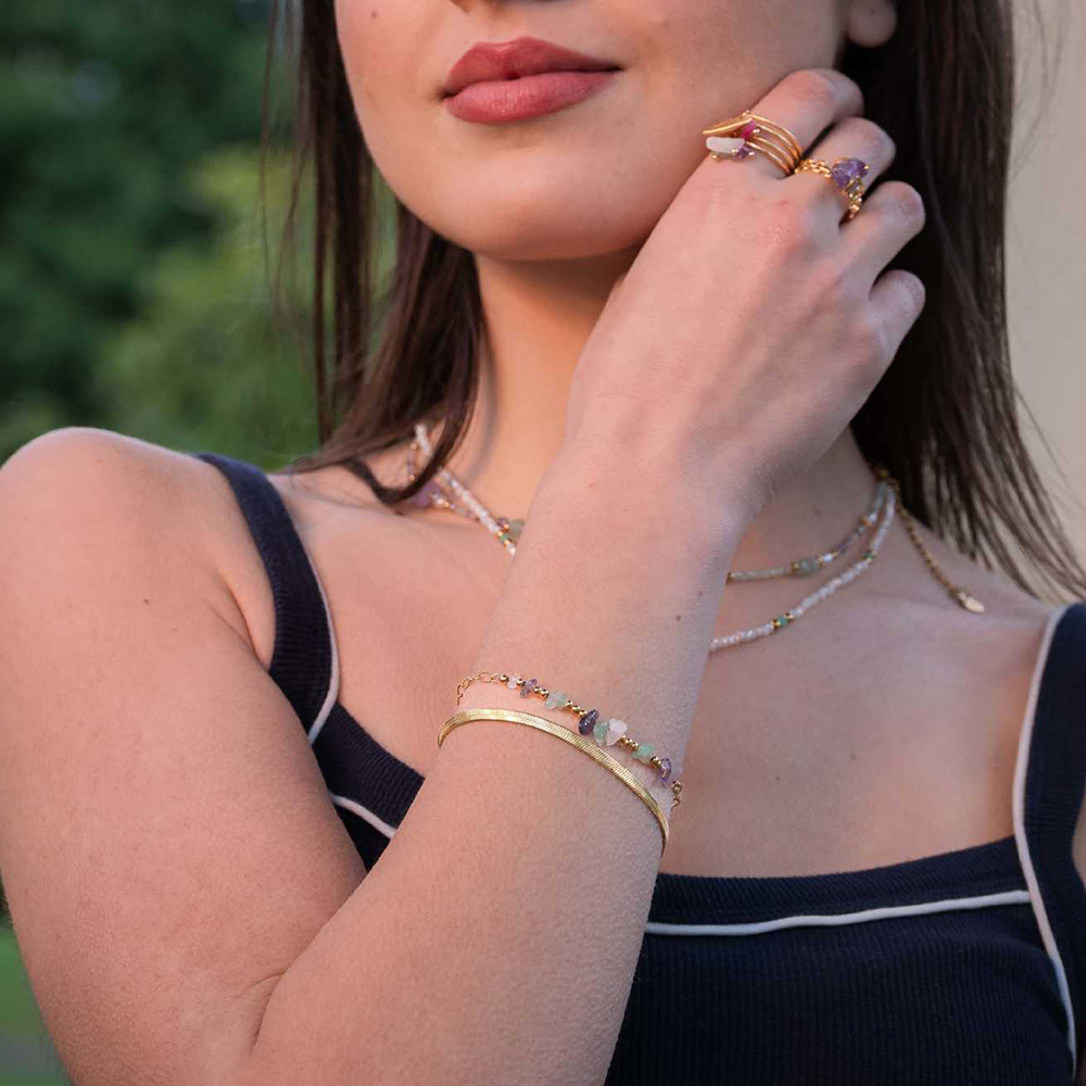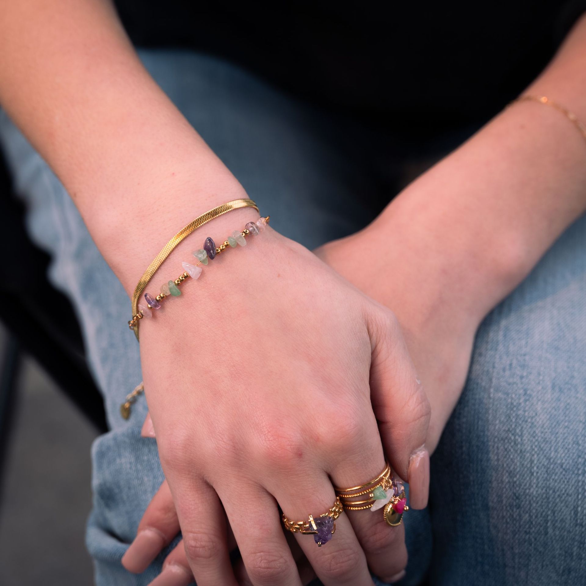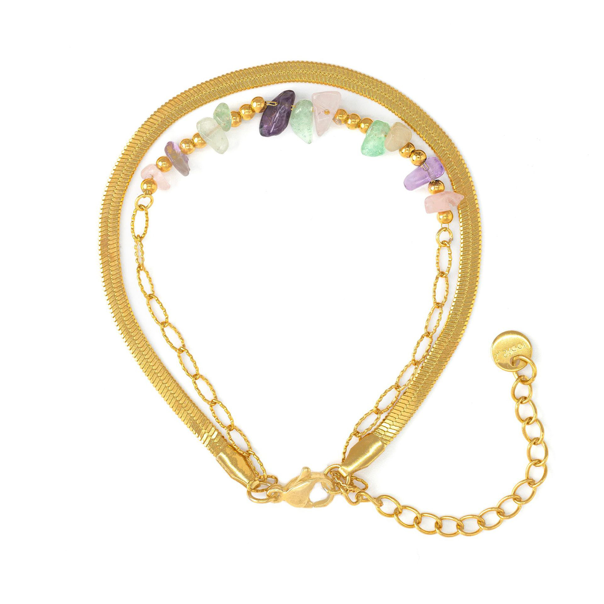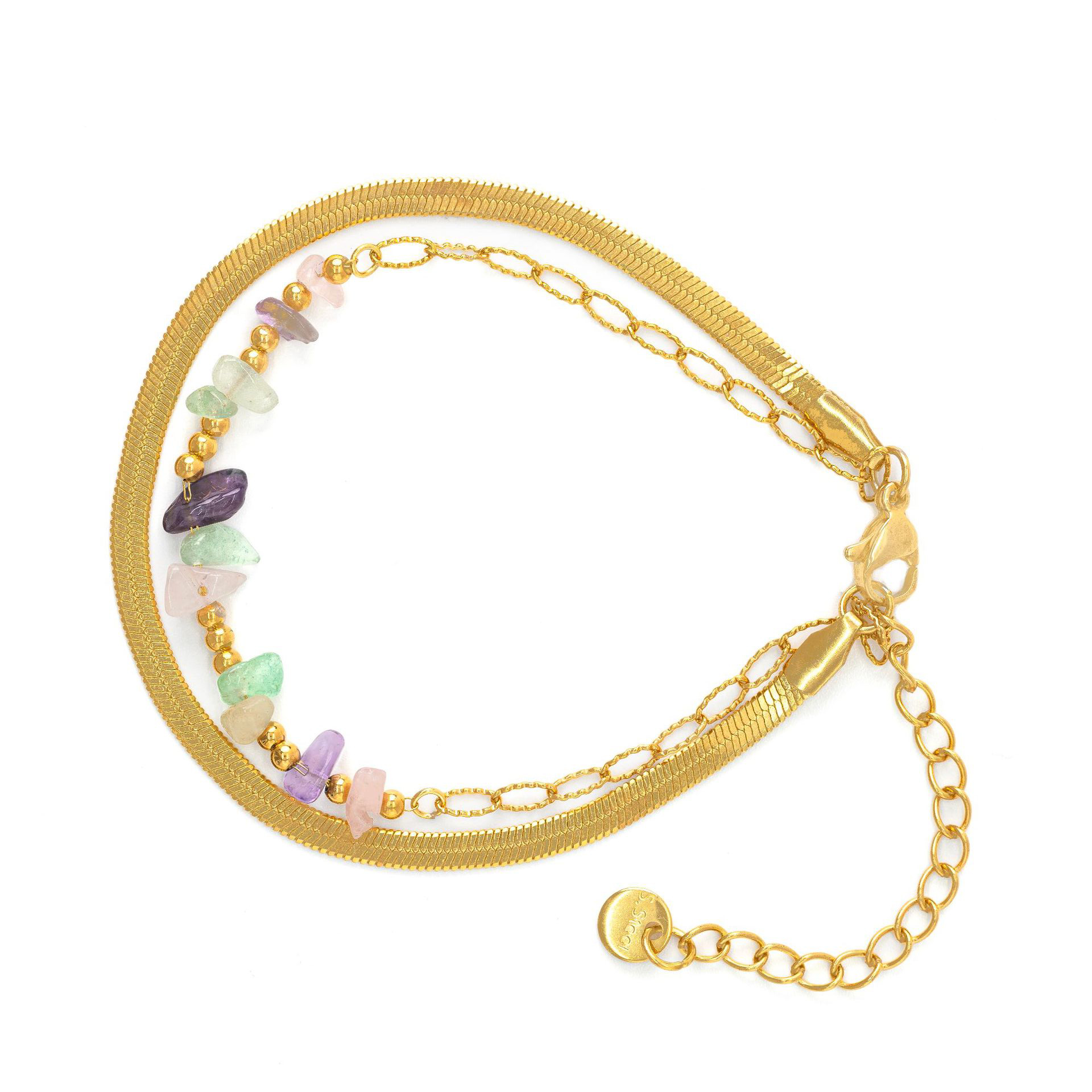 Bracelets en acier inoxydable, Acier inoxydable 304, avec Pierre naturelle, Plaqué or 18K, Double couche & bijoux de mode & pour femme, Vendu par PC