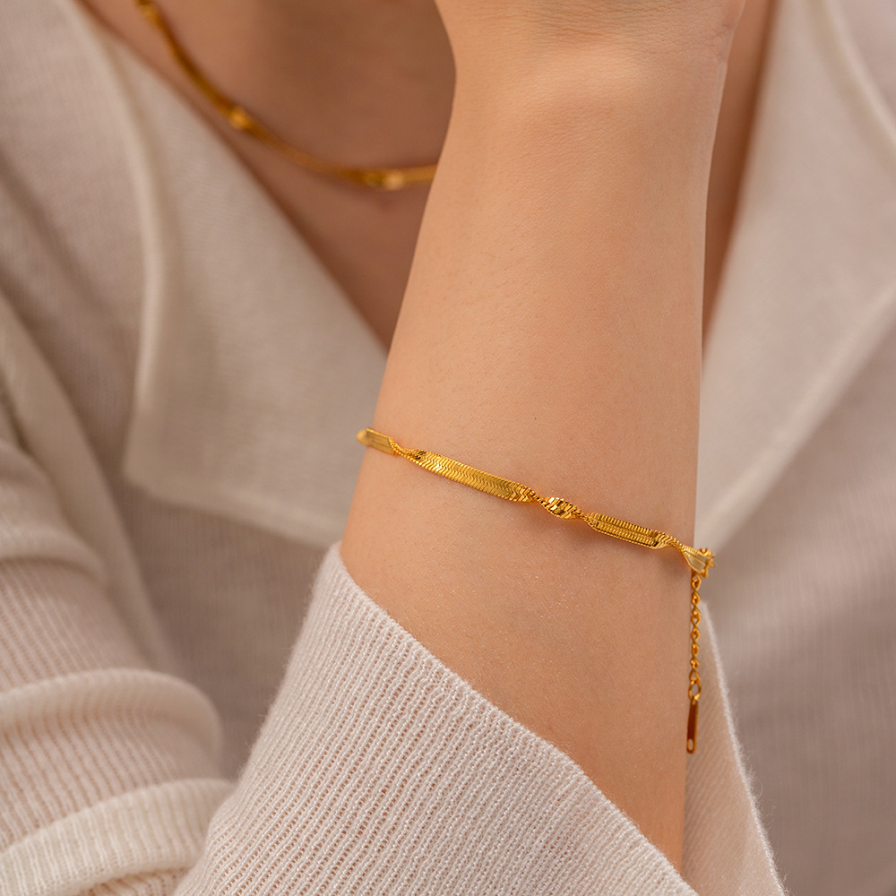 Bracelets en acier inoxydable, Acier inoxydable 304, Plaqué d'or 18K, bijoux de mode & pour femme, Vendu par PC