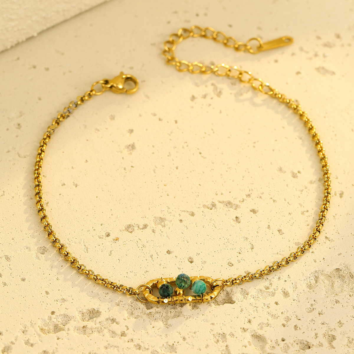 Bracelets en acier inoxydable, Acier inoxydable 304, avec Pierre naturelle, Plaqué or 18K, bijoux de mode & pour femme & creux, Vendu par PC