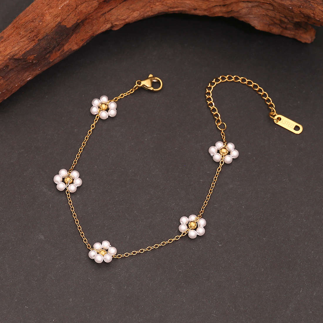Bracelets en acier inoxydable, Acier inoxydable 304, avec perle de plastique, Placage de couleur d'or, bijoux de mode & pour femme, plus de couleurs à choisir, Vendu par PC