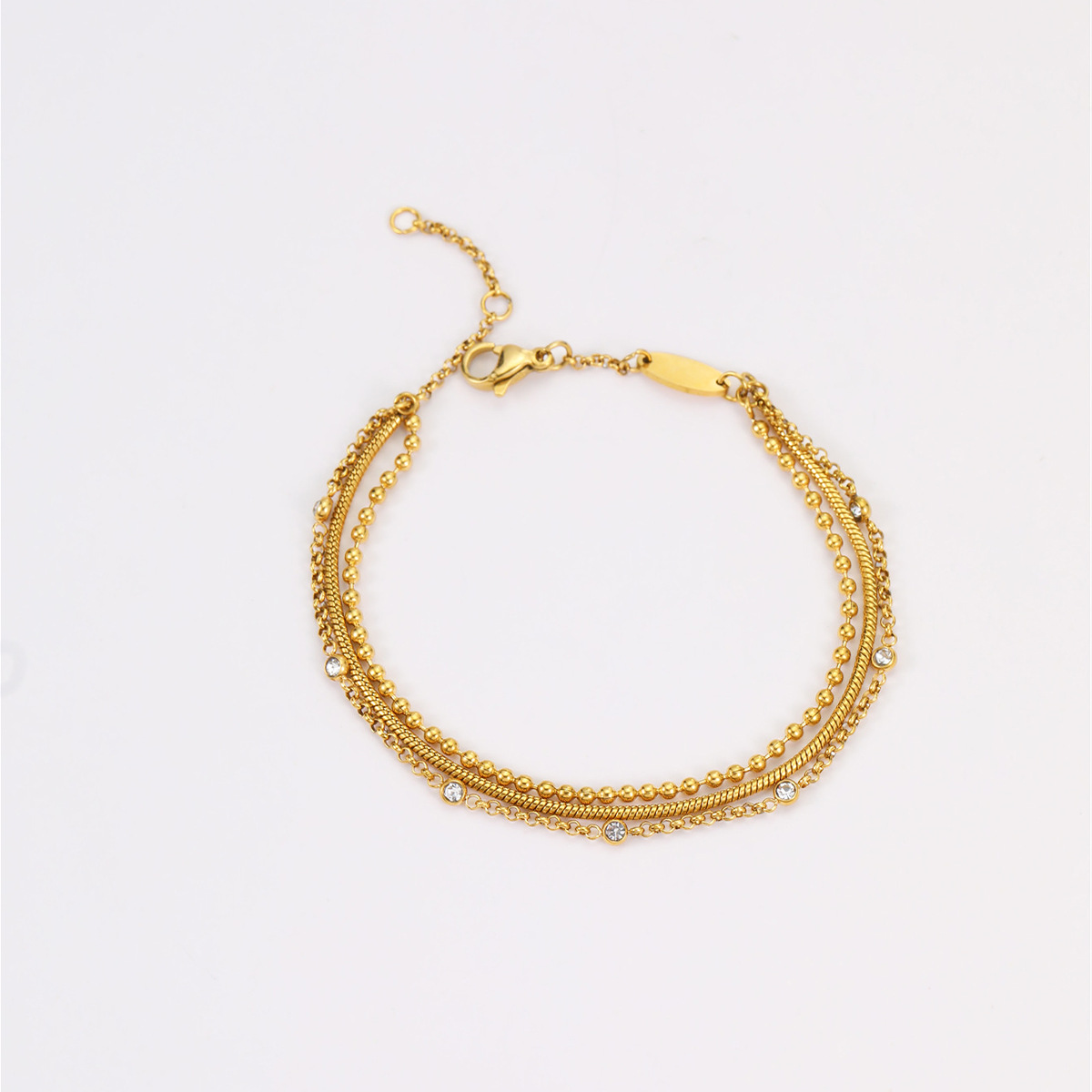 Bracelets en acier inoxydable, Acier inoxydable 304, Placage, trois couches & pavé de micro zircon & pour femme, plus de couleurs à choisir, Vendu par PC