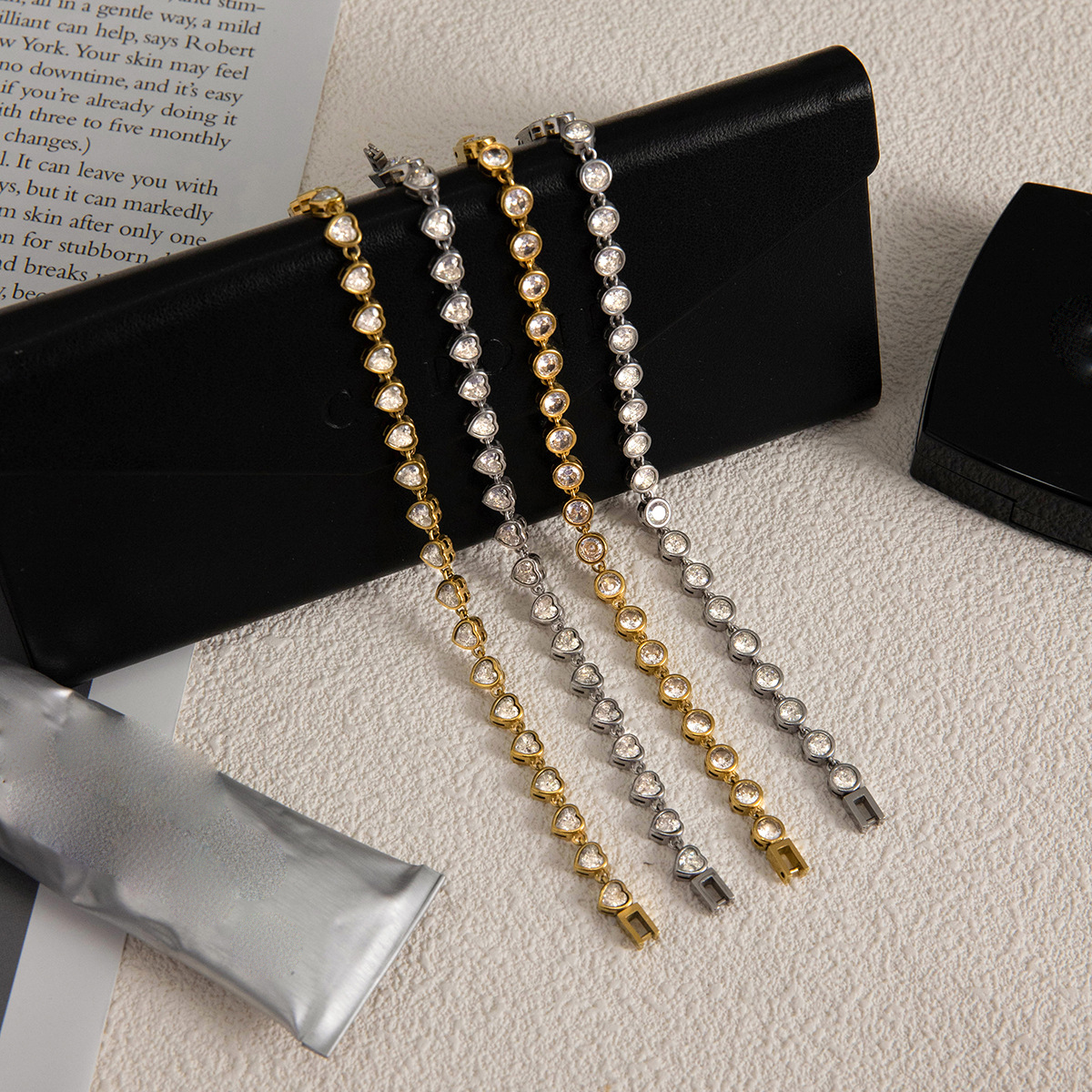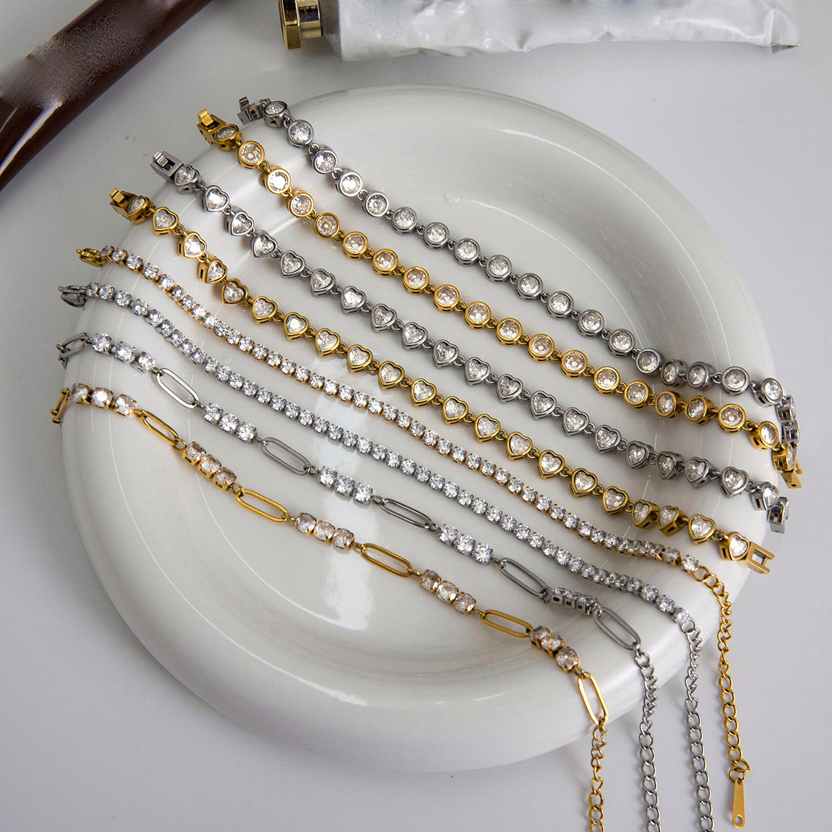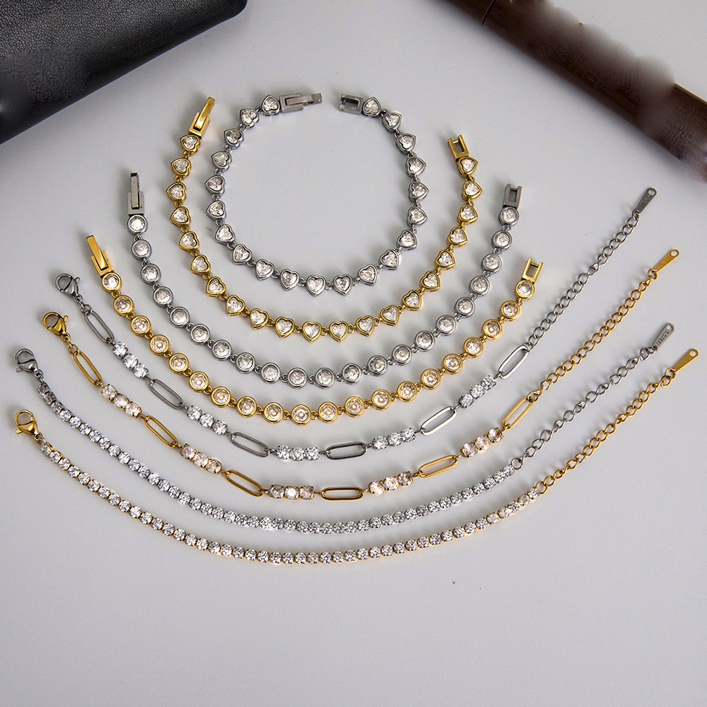 Bracelets en acier inoxydable, Acier inoxydable 304, avec zircon cubique, Placage, bijoux de mode & styles différents pour le choix & pour femme, plus de couleurs à choisir, Vendu par PC