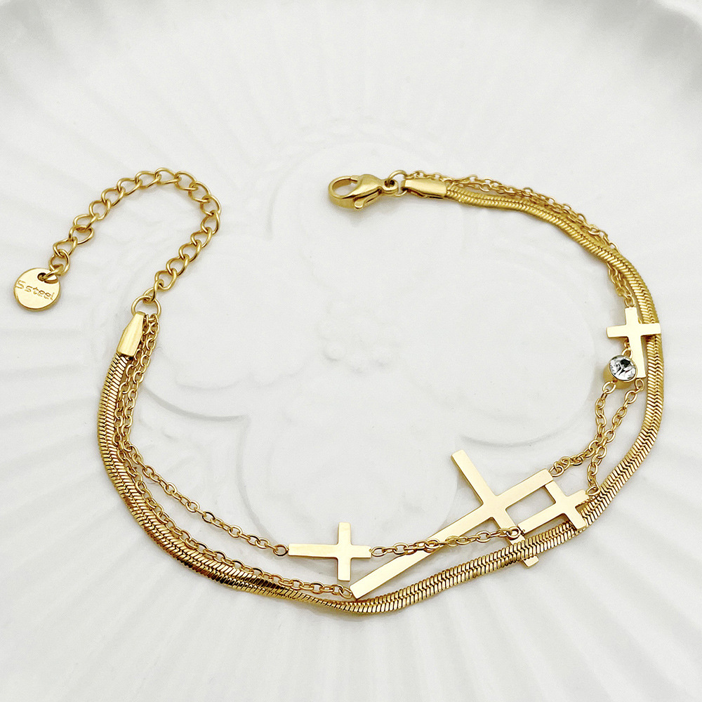 Bracelets en acier inoxydable, croix, couleur originale .5 pouce, Vendu par brin