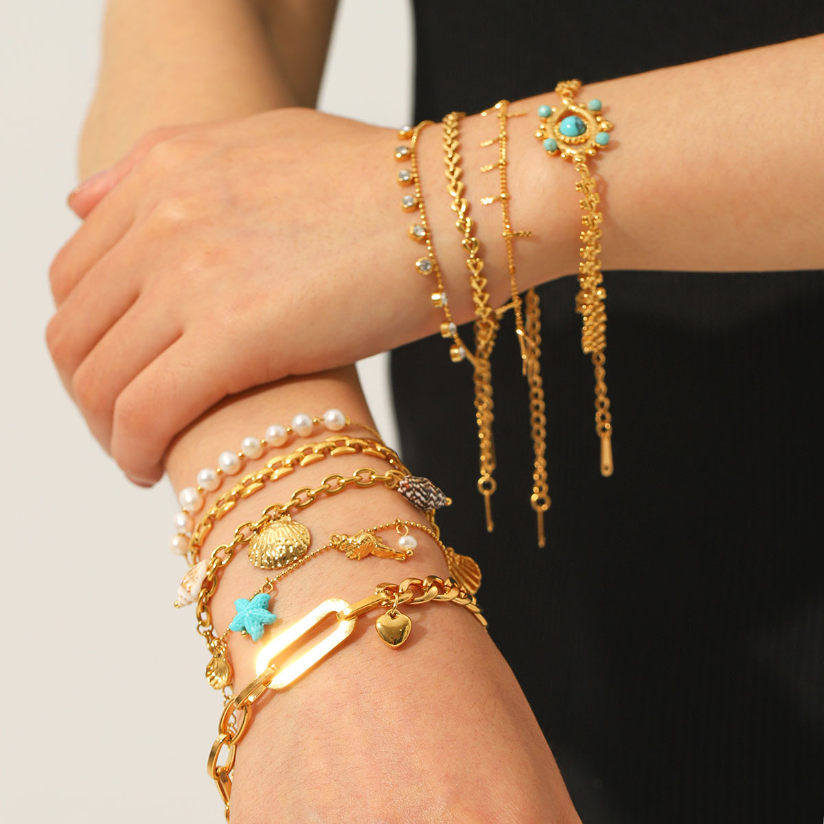 Bracelets en acier inoxydable, Acier inoxydable 304, avec Pierre naturelle & coquille & perle de plastique, Placage de couleur d'or, bijoux de mode & pavé de micro zircon, plus de couleurs à choisir, Vendu par PC