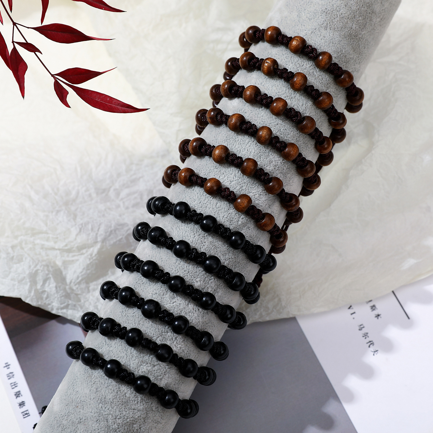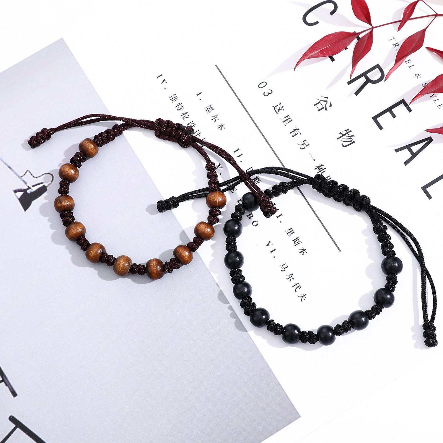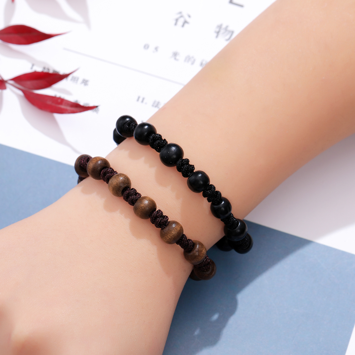Bracelets en bois, avec Cordon de noeud, Réglable & unisexe, couleurs mélangées, Longueur:16-28 cm, Vendu par fixé